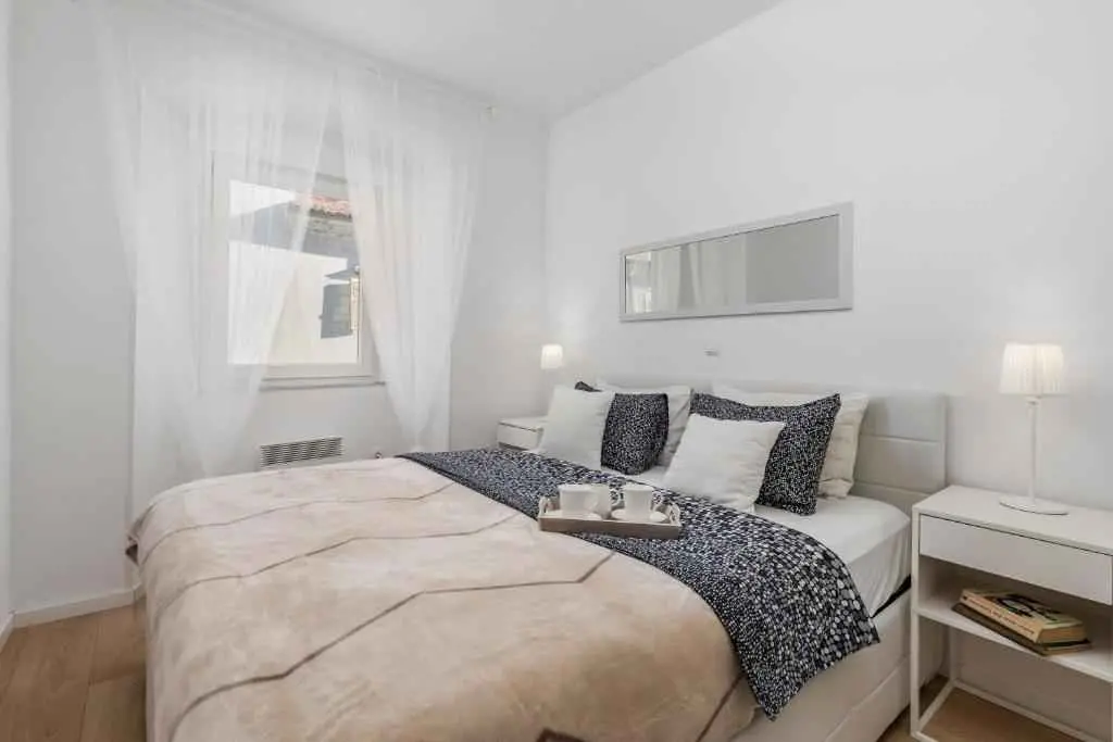 Apartman Opa Gold nalazi se u centru grada, uz glavnu šetnicu 'Korzo', nekoliko koraka od mora i gradske tržnice. 1 minuta hoda od Hrvatskog narodnog kazališta Ivana Zajca i 300 m od Pomorskog i povijesnog muzeja Hrvatskog primorja. Opa Gold je potpuno opremljen prostran apartman, veličine 50m2. Sastoji se od dvije sobe s dnevnim boravkom, kuhinje, blagovaonice i moderno opremljene kupaonice s tušem, perilicom i sušilicom robe, te sušilom za kosu. Kuhinja je opremljena svim najmodernijim ugradbenim aparatima, pećnicom, mikrovalnom, pločom za kuhanje, perilicom suđa. Kreveti imaju madrace sa 7-zonskim džepićastim jezgrama u kompletu s anatomskim jastucima, također s antibakterijskim navlakama. U neposrednoj blizini apartmana nalaze se brojni restorani, caffe barovi, trgovine, Gradska knjižnica, ljekarna, te ostali potrebni sadržaji.