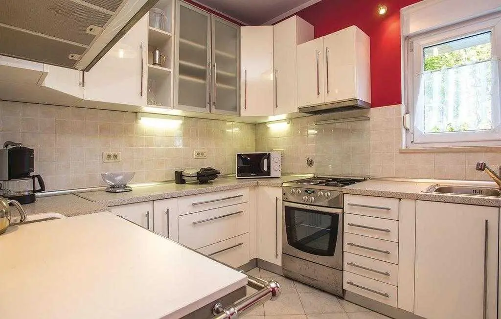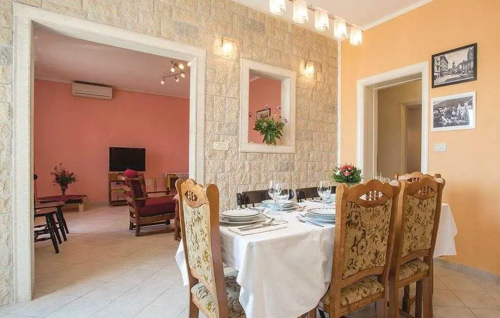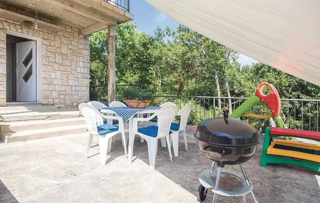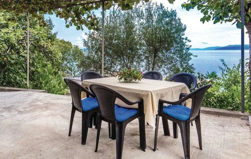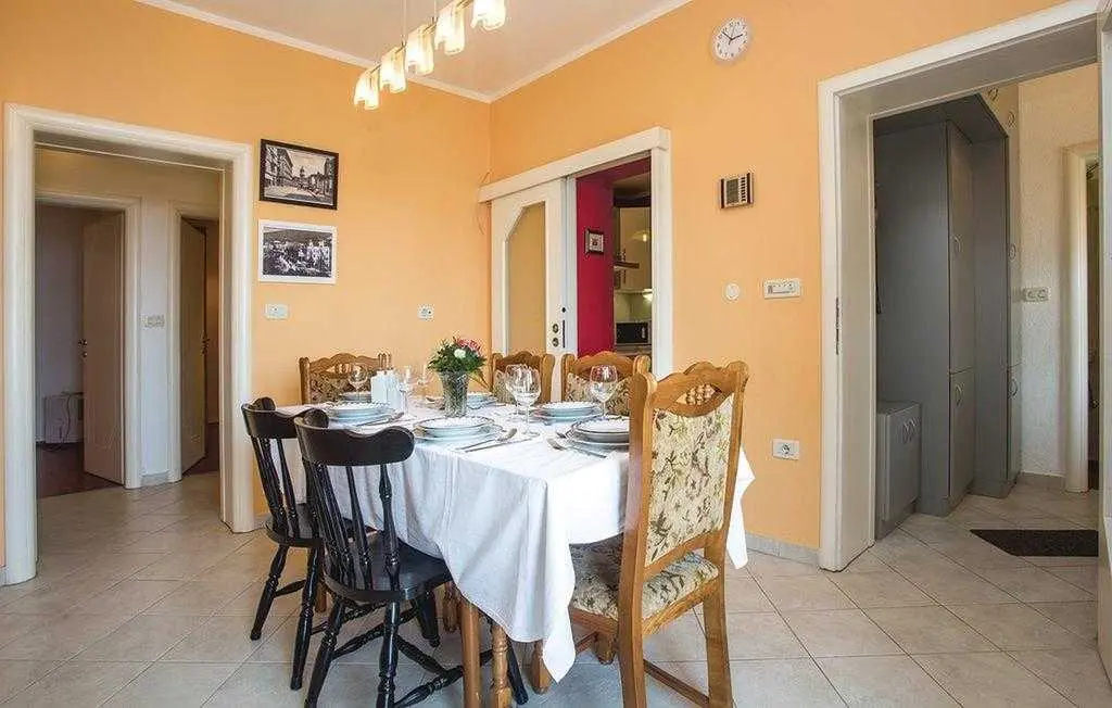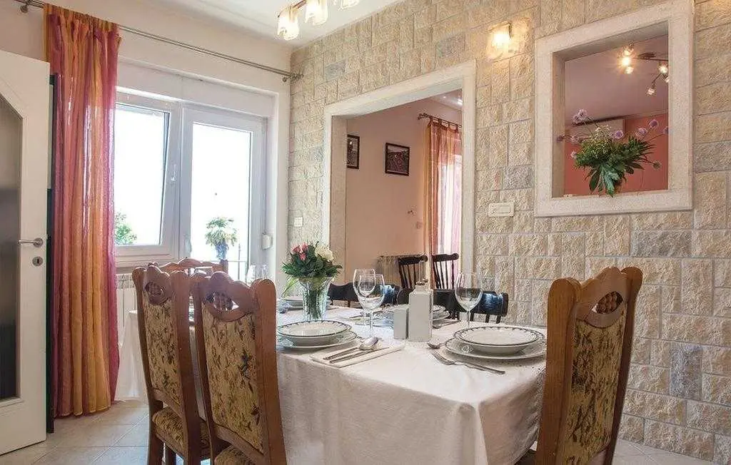 Opis objekta Apartman: 83 m2 prizemlje Materijal izrade: Kamen zvjezdice: 4 Osoba: 6 Ljubimci dozvoljeni: 1 Godina izgradnje: 1965 Renovirano: 2015 Domacin stanuje u kuci Sadržaji 2 TV Satelitska antena Besplatan, neogranicen Wi-Fi sef Prostorije Kuhinja Dnevna soba Kupaonice: 2 Spavaće sobe: 3 Spavaće sobe Spavaca soba br. 1 Bracni krevet (2 ležaja) Spavaca soba br. 2 Jednolezajni krevet (2 ležaja) Spavaca soba br. 3 Jednolezajni krevet (2 ležaja) Kupaonice Kupaonica br. 1 Toalet: topla i hladna voda, Kada Kupaonica br. 2 Toalet: topla i hladna voda, Tus Energija/Grijanje Centralno grijanje Troskovi rezija ukljuceni Klima uredaj: 1 kom. Opremljenost Kuhinja: topla i hladna voda Stednjak (plin/struja) Hladnjak Napa Pretinac za zamrzavanje: 20 lit. Aparat za kavu Mikrovalna pecnica Perilica rublja Perilica posuda Okućnica Terasa ili slicno: 20 m2 Otvorena terasa Terasa ili slicno: 26 m2 Natkrivena terasa Ogradena prirodna parcela: 500 m2 Vrtni namjestaj Parking na parceli: 3 Tobogan Rostij igracke za vanjski prostor 2. red do plaze teniski tereni: 1.0 km javni bazen: 1.5 km vanjski bazen: 1.5 km mogucnost ribolova: 100 m centar za rekreaciju: 1.5 km Ležaljki: 1 Udaljenosti Udalj. od najblizeg naselja: 50 m Udaljenost od trgovine: 1.5 km Udaljenost od restorana: 1.5 km Udaljenost od najblizeg grada: 5.0 km Opatija Udaljenost Zracna luka: 25.0 km Udaljenost od vode: 70 m Sljuncana plaza