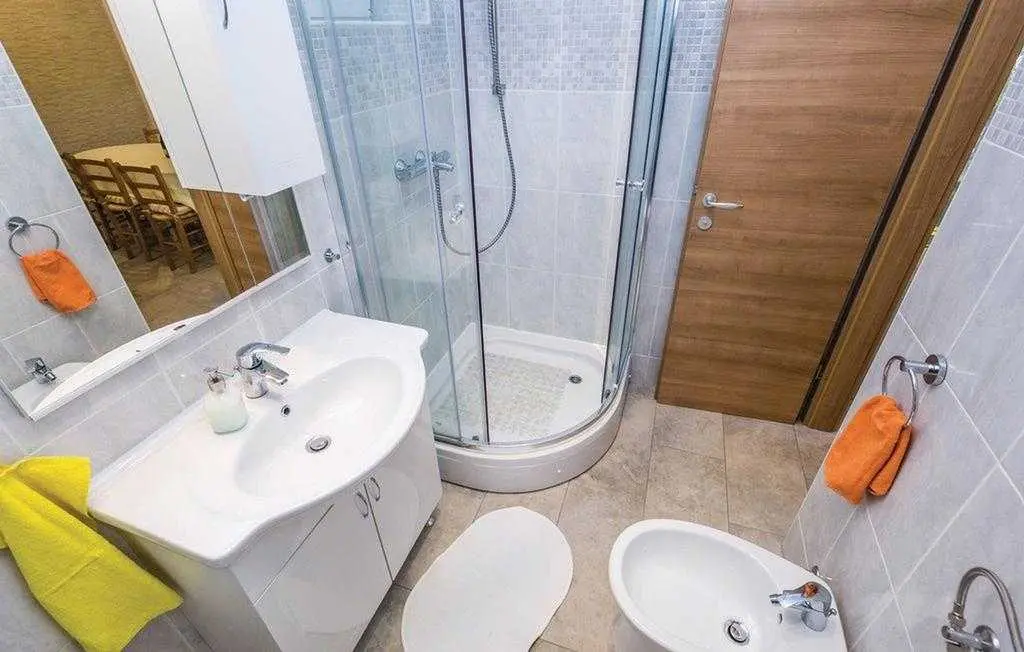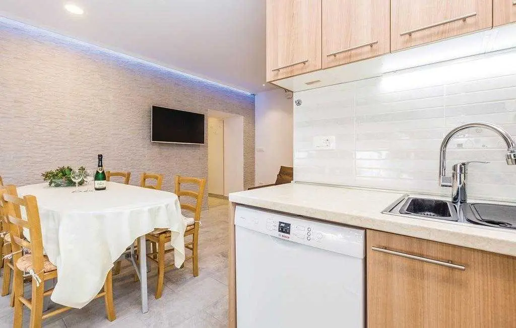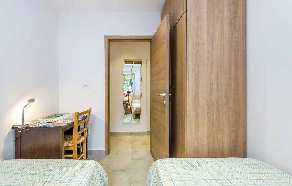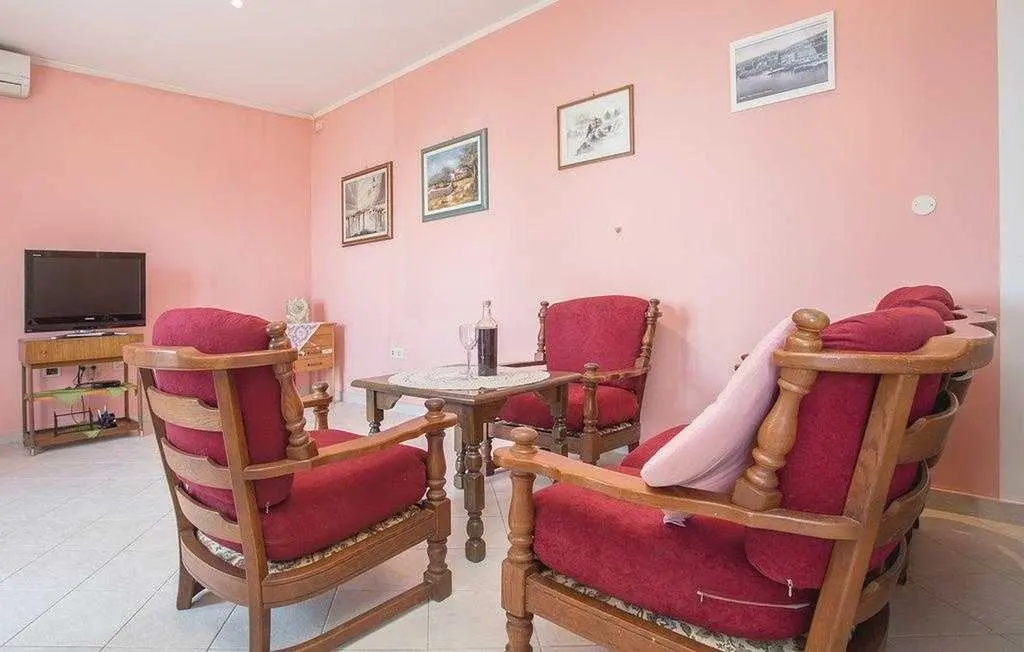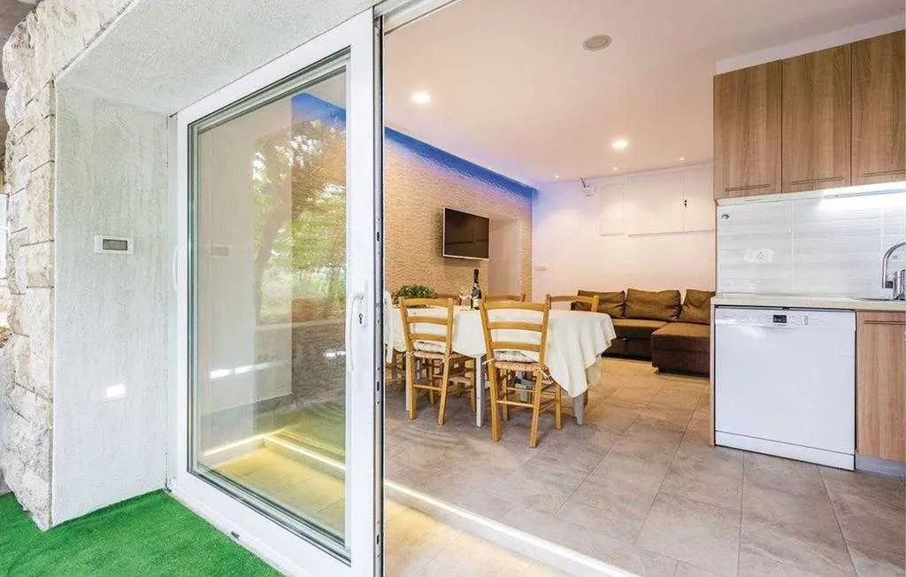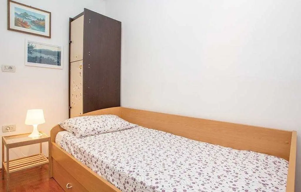 Opis objekta Apartman: 83 m2 prizemlje Materijal izrade: Kamen zvjezdice: 4 Osoba: 6 Ljubimci dozvoljeni: 1 Godina izgradnje: 1965 Renovirano: 2015 Domacin stanuje u kuci Sadržaji 2 TV Satelitska antena Besplatan, neogranicen Wi-Fi sef Prostorije Kuhinja Dnevna soba Kupaonice: 2 Spavaće sobe: 3 Spavaće sobe Spavaca soba br. 1 Bracni krevet (2 ležaja) Spavaca soba br. 2 Jednolezajni krevet (2 ležaja) Spavaca soba br. 3 Jednolezajni krevet (2 ležaja) Kupaonice Kupaonica br. 1 Toalet: topla i hladna voda, Kada Kupaonica br. 2 Toalet: topla i hladna voda, Tus Energija/Grijanje Centralno grijanje Troskovi rezija ukljuceni Klima uredaj: 1 kom. Opremljenost Kuhinja: topla i hladna voda Stednjak (plin/struja) Hladnjak Napa Pretinac za zamrzavanje: 20 lit. Aparat za kavu Mikrovalna pecnica Perilica rublja Perilica posuda Okućnica Terasa ili slicno: 20 m2 Otvorena terasa Terasa ili slicno: 26 m2 Natkrivena terasa Ogradena prirodna parcela: 500 m2 Vrtni namjestaj Parking na parceli: 3 Tobogan Rostij igracke za vanjski prostor 2. red do plaze teniski tereni: 1.0 km javni bazen: 1.5 km vanjski bazen: 1.5 km mogucnost ribolova: 100 m centar za rekreaciju: 1.5 km Ležaljki: 1 Udaljenosti Udalj. od najblizeg naselja: 50 m Udaljenost od trgovine: 1.5 km Udaljenost od restorana: 1.5 km Udaljenost od najblizeg grada: 5.0 km Opatija Udaljenost Zracna luka: 25.0 km Udaljenost od vode: 70 m Sljuncana plaza
