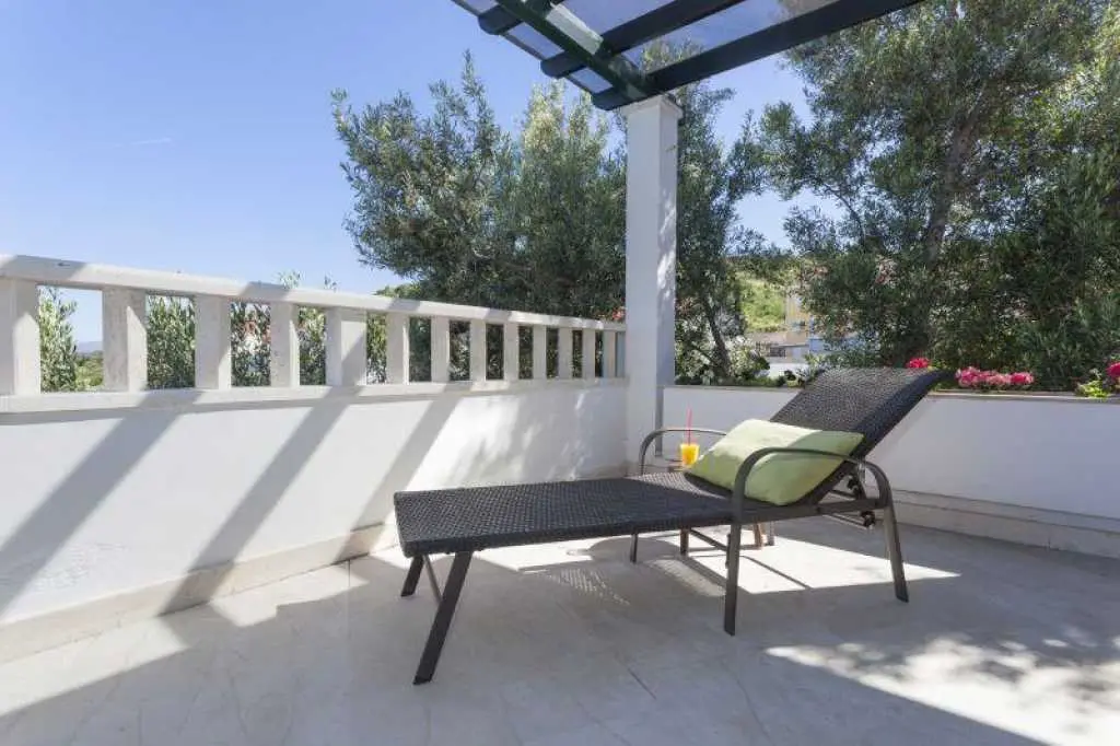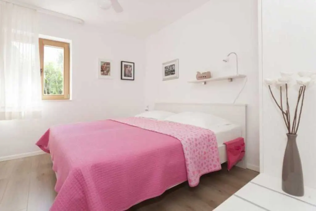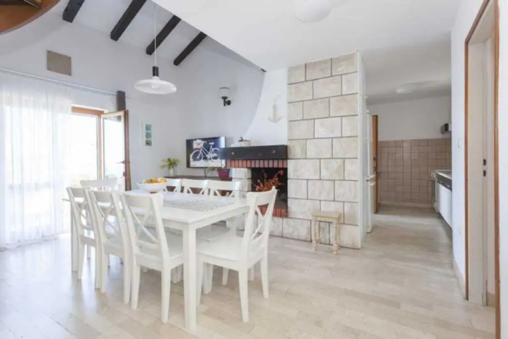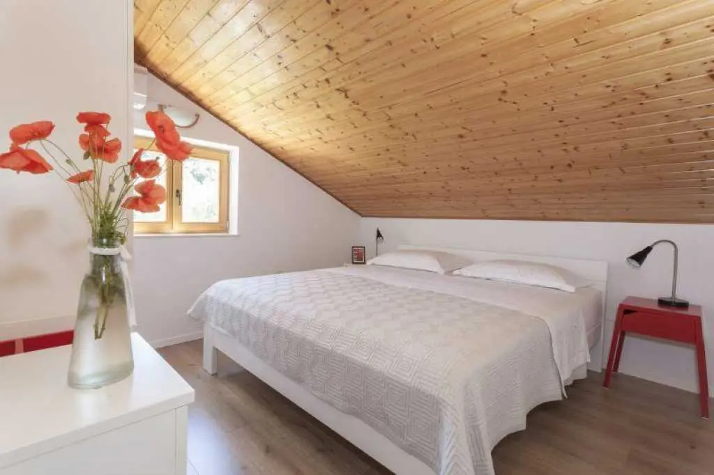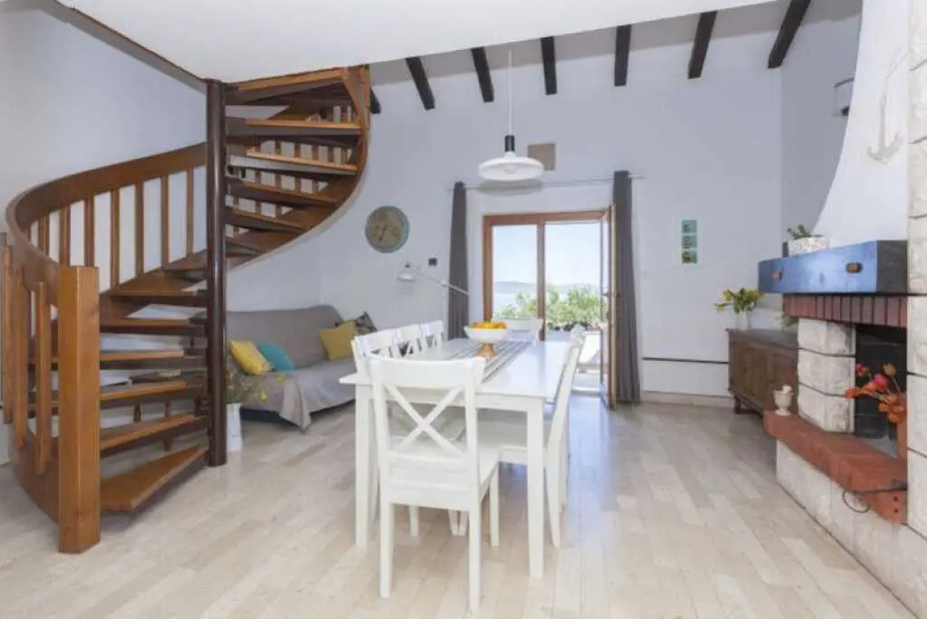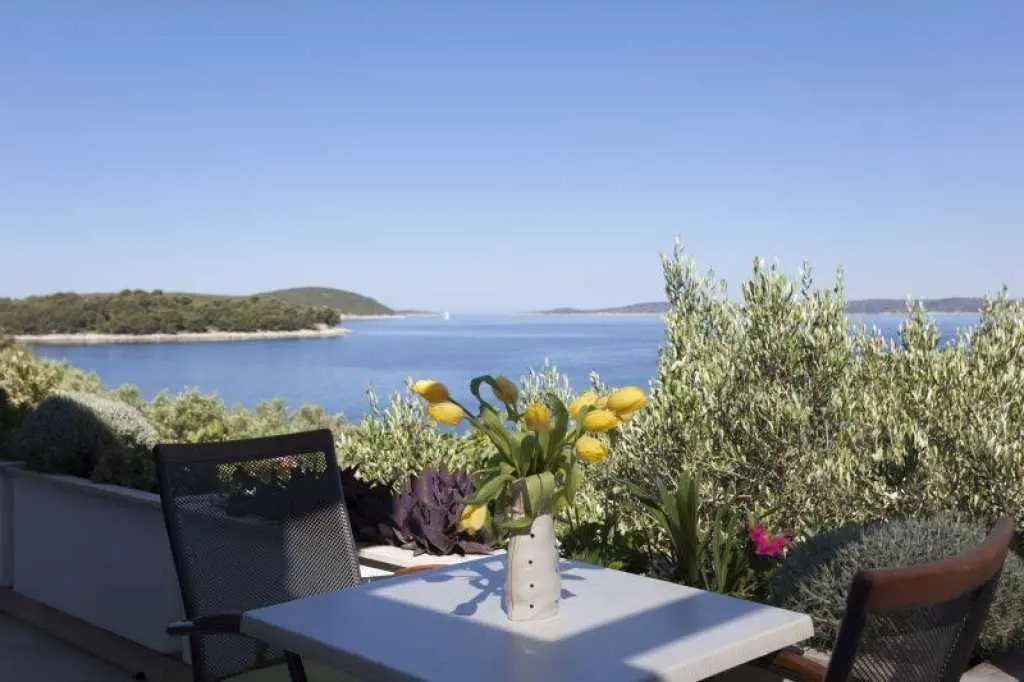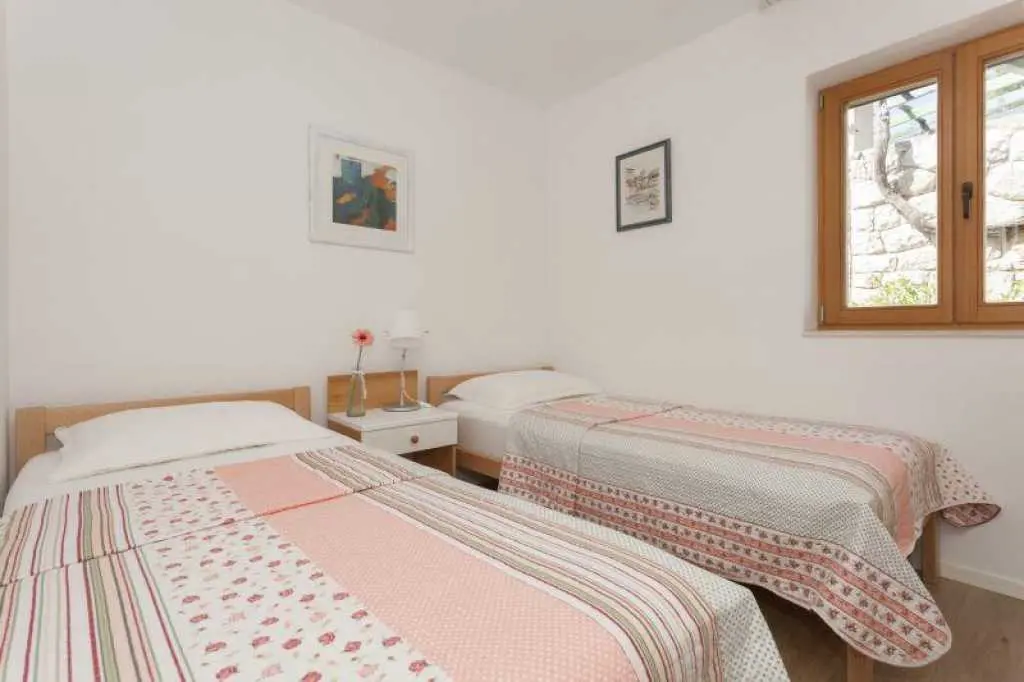 Villa Peggy je kuća na dvije etaže, na svakoj etaži po jedan apartman. Apartmani se iznajmljuju zajedno jer imaju zajednički ulaz, dakle za doći u gornji apartman treba proći kroz dnevni boravak donjeg aprtmana. APARTMAN A (60 M2): Prizemlje. Sastoji se od dvije dvokrevetne spavaće sobe, kupatila, kuhinje (s perilicom za sude), dnevnog boravka (satelitska televizija, glazbena linija) i sto je najvaznije za ljeto, prostrane terase (cca 30 m2) s prekrasnim pogledom na more i kućicom sa roštiljom. APARTMAN B (30 M2): Potkrovlje. Sastoji se od dvije dvokrevetne sobe, kupatila, male kuhinje i dva balkona. Kuća je smještena u maloj uvali Tepli bok i 15 metara je udaljena od mora, 500 m od centra malog starog ribarskog mjesta Maslinica u kojem se nalazi trgovina i nekoliko restorana i konoba. Tepli bok je uvala idealna za surfanje zbog vjetra maestral koji uvijek lagano puše i to je razlog zasto nikada nije previše vruće. Villa Peggy je kuća idealna za odmor dvije obitelji (8 osoba) koje žele provesti odmor zajedno al ipak odvojeno.
