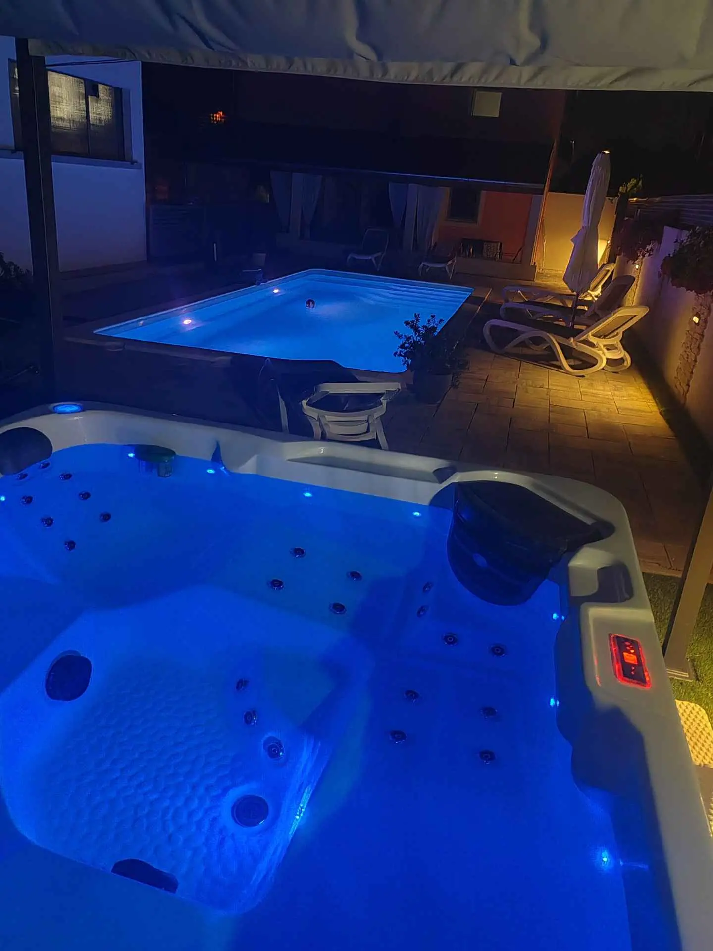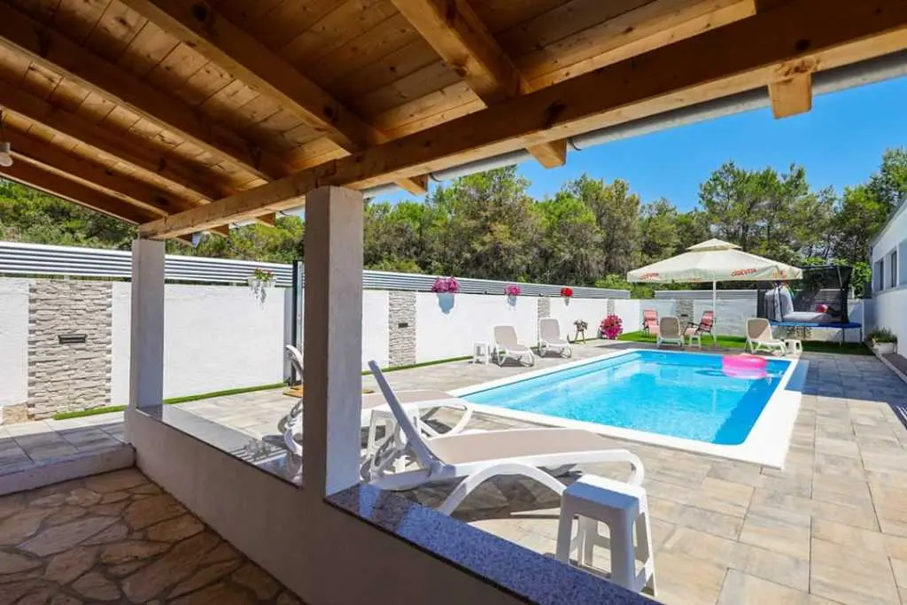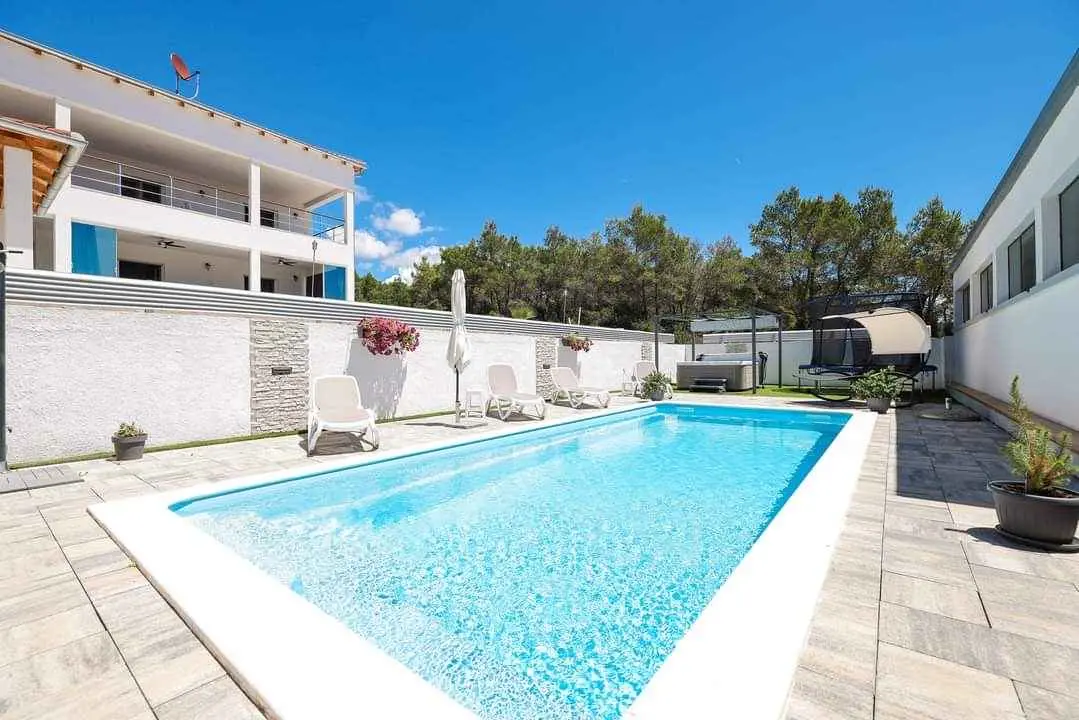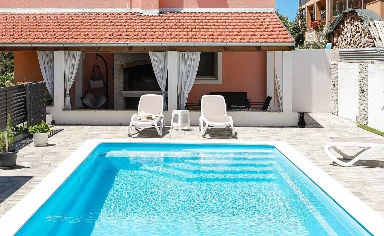 ANAI Apartman 80m2 / privatni bazen / jacuzzi/ Nalazimo se u Sukošanu - 12 km od Zadra Apartman 4+2 / apartman za najam / prizemlje dvije spavaće sobe (1. soba - bračni krevet + kutna garnitura, klima, 2. soba - bračni krevet, klima, kuhinja (perilica posuđa, mikrovalna pećnica), pećnica, keramička ploča za kuhanje, hladnjak), veliki dnevni boravak (dvije sofe, TV, stol za blagovanje), klima uređaj, kupaonica (perilica rublja), natkrivena terasa. Na terasi se nalazi i roštilj. Apartman je klimatiziran, WiFi, postoje dva parkirna mjesta. Bazen je samo za goste apartmana. Sve je od nas udaljeno 1000m-3000m. Plaže, trgovine, restorani. Mi smo mlada obitelj koja živi iznad stana. Uglavnom nismo kod kuće :). Ali ako nas trebate, stojimo vam na raspolaganju. Ništa neće ometati vašu privatnost. U kući se iznajmljuje samo jedan stan. Prizemlje kuće je samo za vas. Nema drugih gostiju osim vas. Smješteni smo na periferiji Sukošana, što je idealno za obiteljski odmor. U našem susjedstvu je mirno. Noći su mirne, a zvukovi iz mjesta zbog ljetnih gužvi dosežu nas vrlo malo.