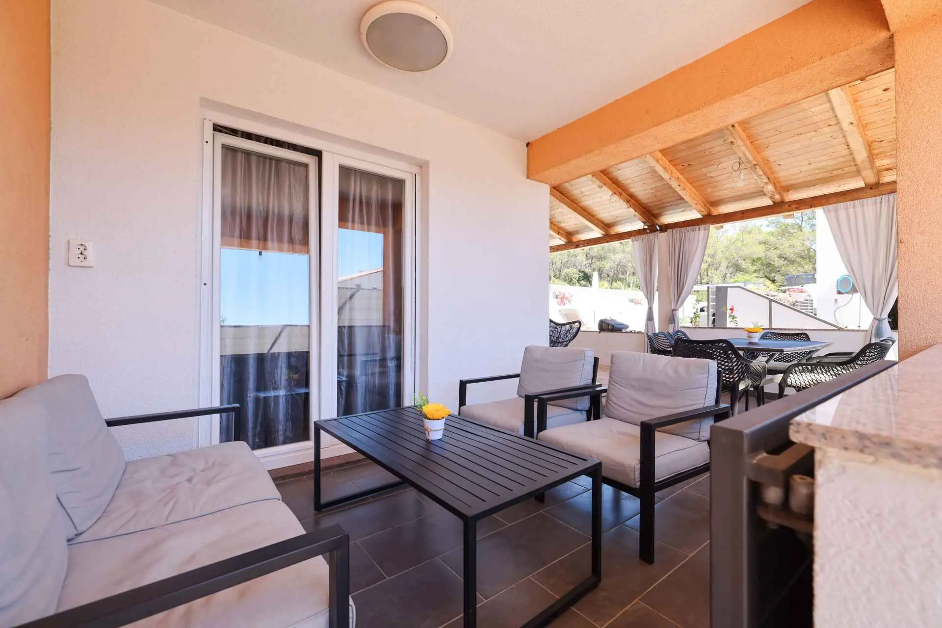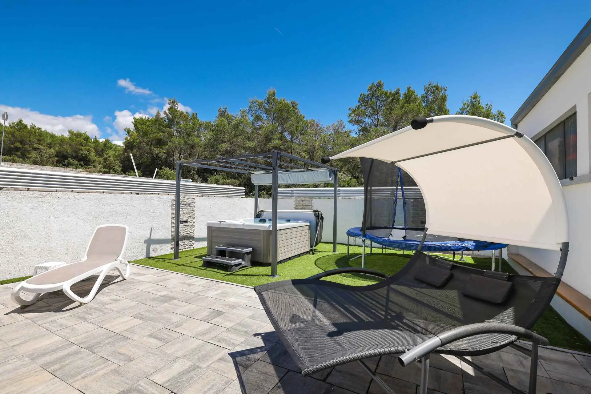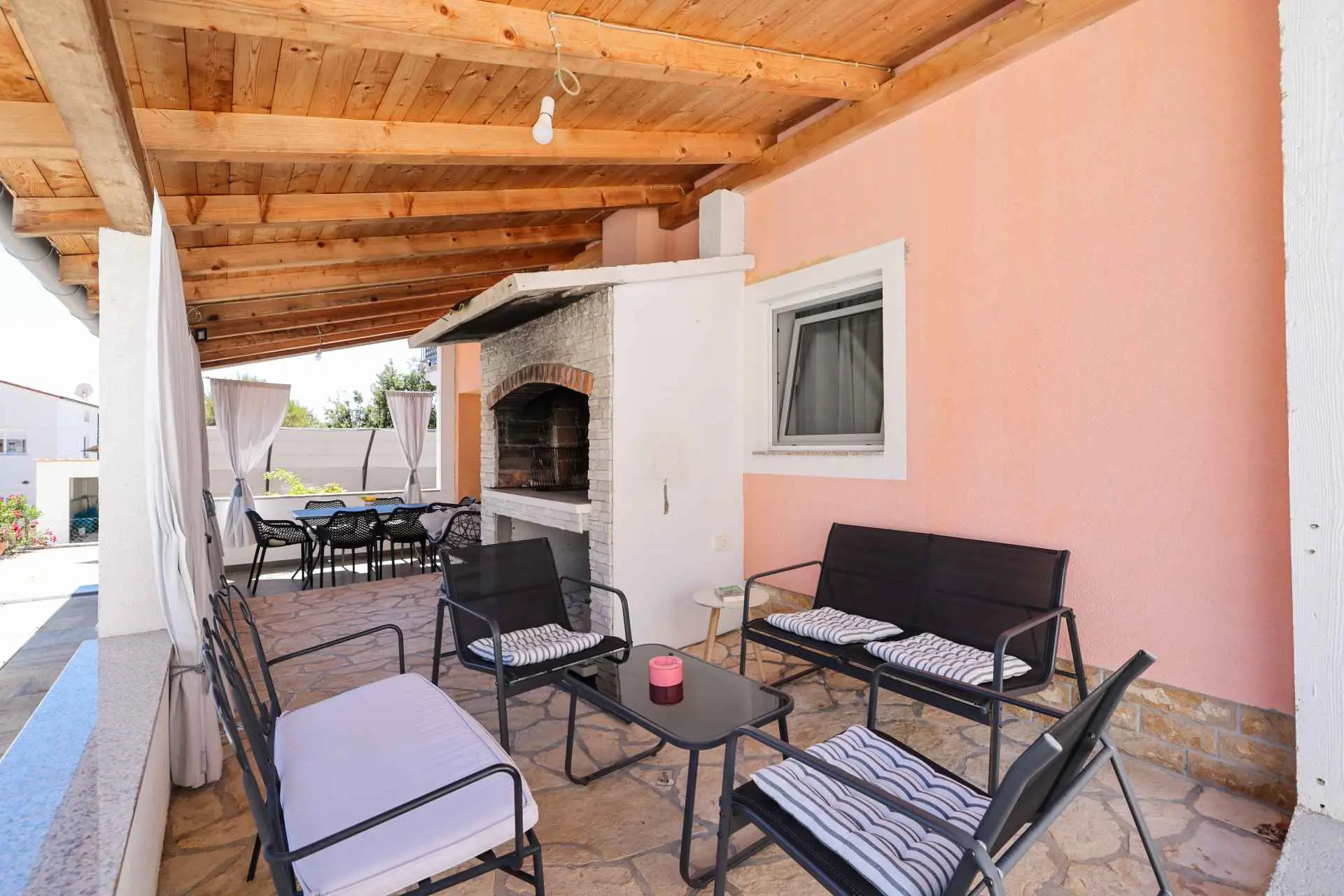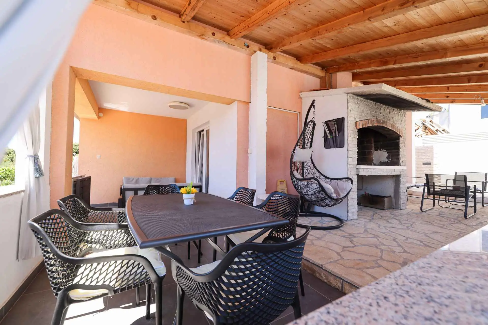 ANAI Apartman 80m2 / privatni bazen / jacuzzi/ Nalazimo se u Sukošanu - 12 km od Zadra Apartman 4+2 / apartman za najam / prizemlje dvije spavaće sobe (1. soba - bračni krevet + kutna garnitura, klima, 2. soba - bračni krevet, klima, kuhinja (perilica posuđa, mikrovalna pećnica), pećnica, keramička ploča za kuhanje, hladnjak), veliki dnevni boravak (dvije sofe, TV, stol za blagovanje), klima uređaj, kupaonica (perilica rublja), natkrivena terasa. Na terasi se nalazi i roštilj. Apartman je klimatiziran, WiFi, postoje dva parkirna mjesta. Bazen je samo za goste apartmana. Sve je od nas udaljeno 1000m-3000m. Plaže, trgovine, restorani. Mi smo mlada obitelj koja živi iznad stana. Uglavnom nismo kod kuće :). Ali ako nas trebate, stojimo vam na raspolaganju. Ništa neće ometati vašu privatnost. U kući se iznajmljuje samo jedan stan. Prizemlje kuće je samo za vas. Nema drugih gostiju osim vas. Smješteni smo na periferiji Sukošana, što je idealno za obiteljski odmor. U našem susjedstvu je mirno. Noći su mirne, a zvukovi iz mjesta zbog ljetnih gužvi dosežu nas vrlo malo.