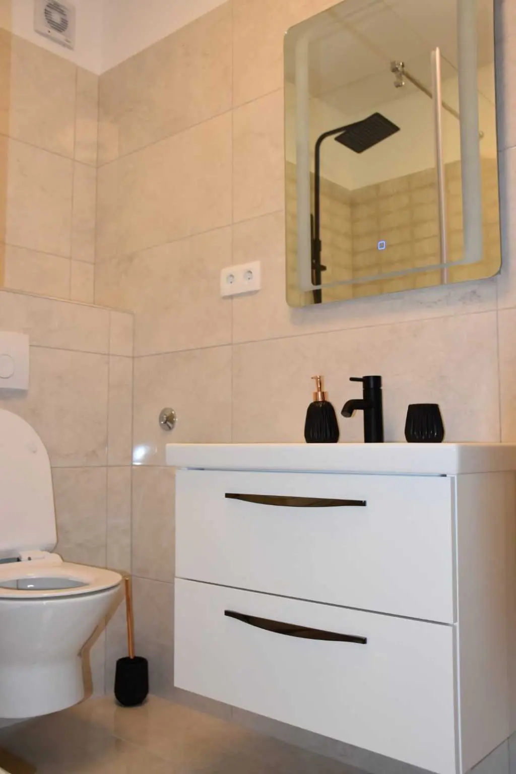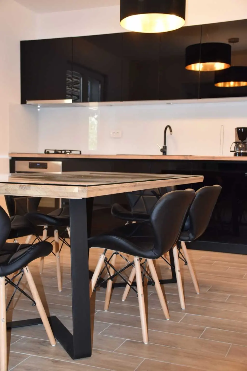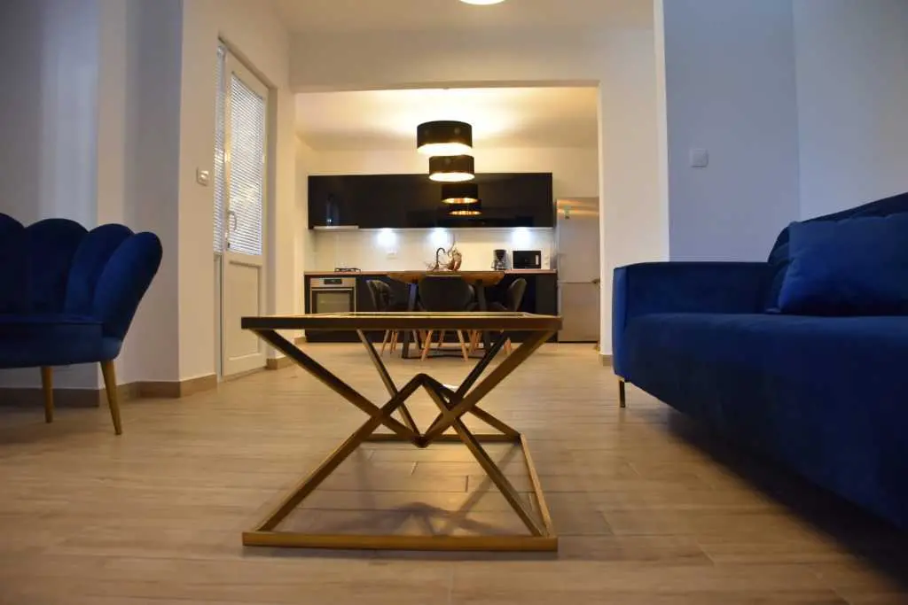 Kompleks se sastoji od 3 odvojena apartmana smještenih u prizemlju i na prvom katu. Ovaj prostrani objekt posjeduje 5 spavaćih soba i 5 kupaonica, te je idealan za grupe od 10+2 ljudi. Bazen, dvorište i roštilj koriste samo gosti apartmana.