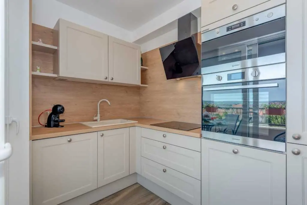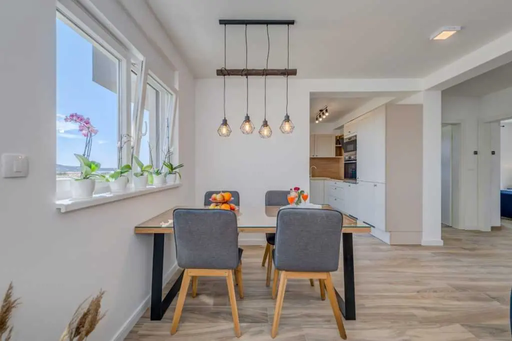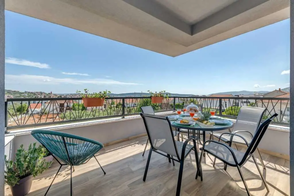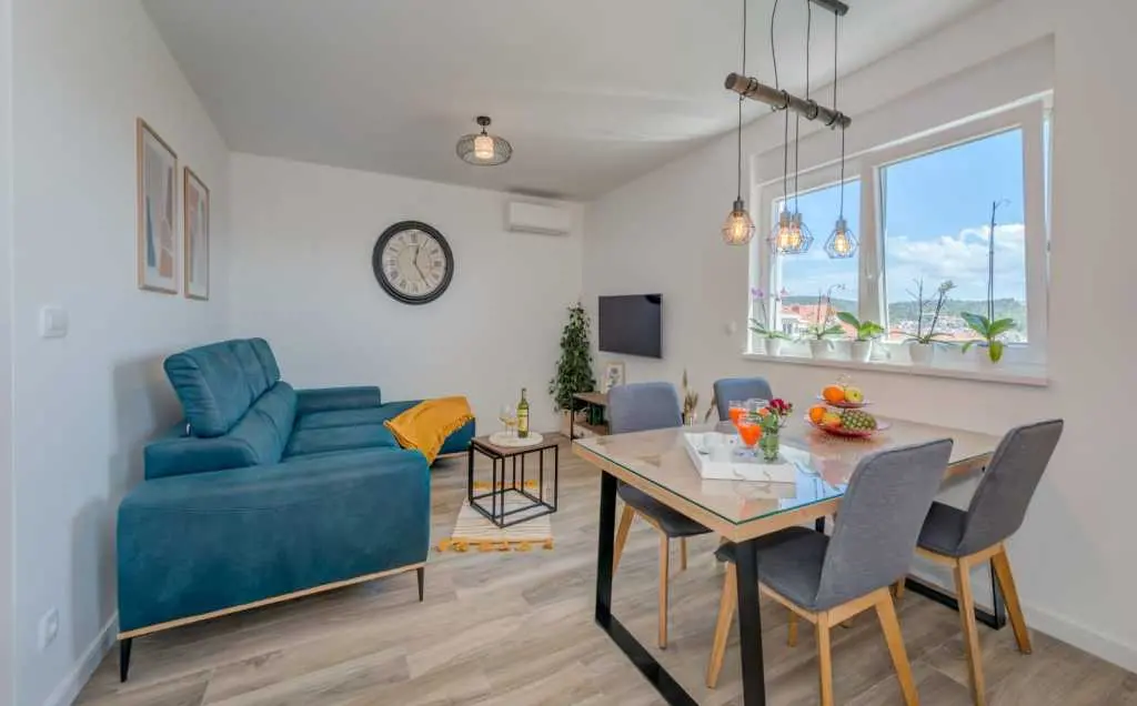 Uživajte u prekrasnom pogledu na Unescov grad ,plavo more i velebne planine koji pruža terasa našeg apartmana.Novoopremljeni interier apartmana koji će vas zasigurno osvojiti svojim šarmom i udobnošću vrhunskog namještaja.Za vesele trenutke pripreme hrane osigurali smo vam sve potrebno posuđe i uređaje.U kuhinji se tako nalazi kafe aparat, toster, pećnica i mnogi drugi pomagaći za pripremu obroka .Blizina samog centra grada s mnogobrojnim restoranima i barovima .Veselimo se vašem dolasku .