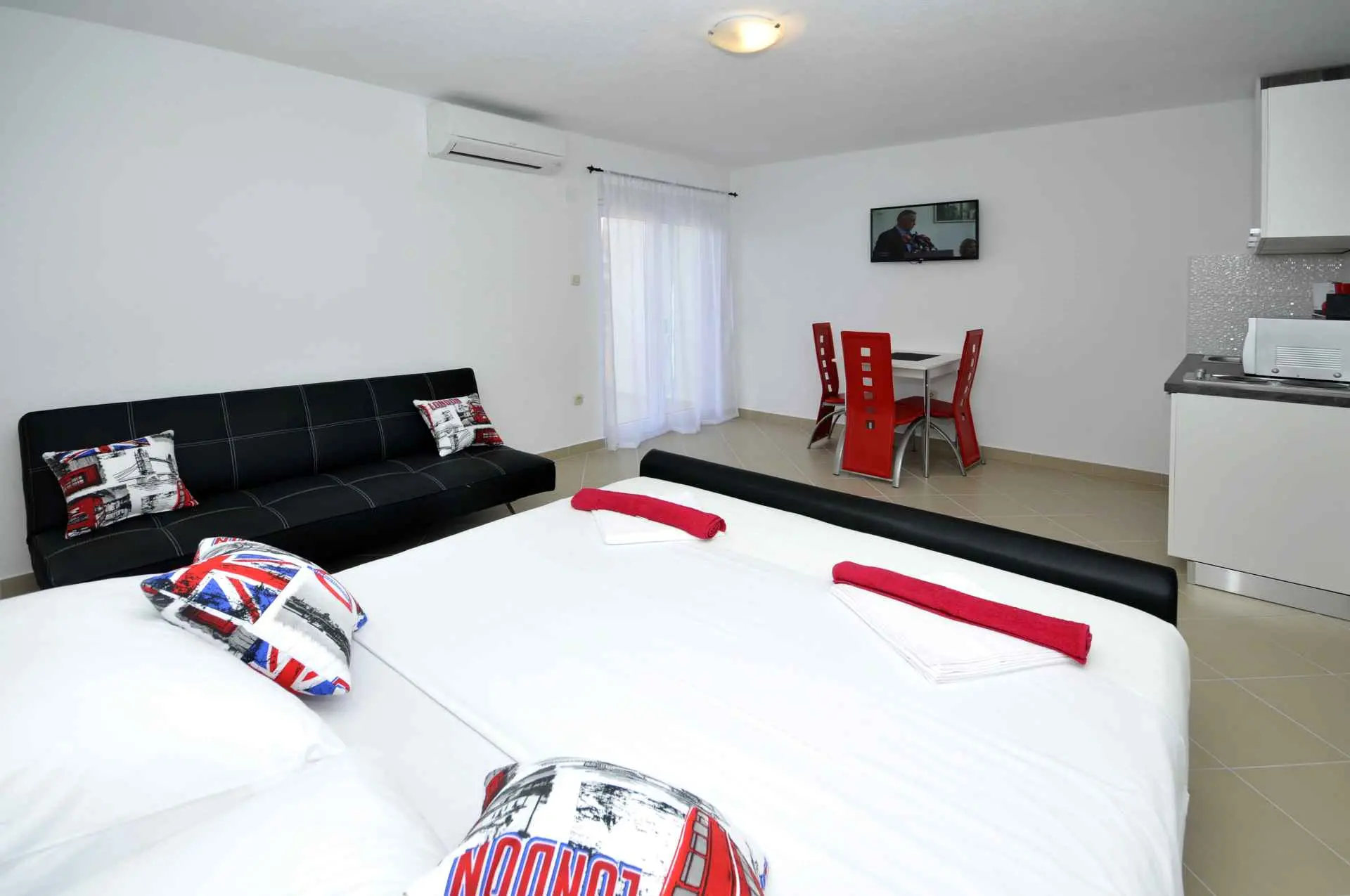 Apartmani Mijatovic smjesteni su svega 900 metara od samog centra grada te 650 metara od najblize plaze. Svi apartmani su novouredjeni i kompletno opremljeni. U cijenu je uracunata i boravisna pristojba.Svaki od apartmana ima vlastitu terasu.
