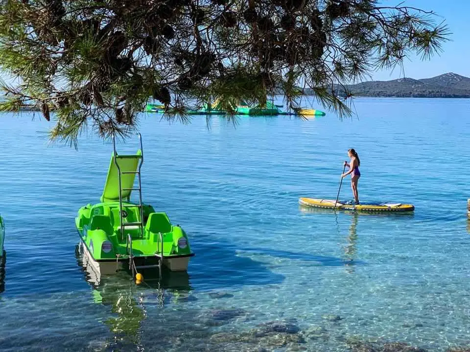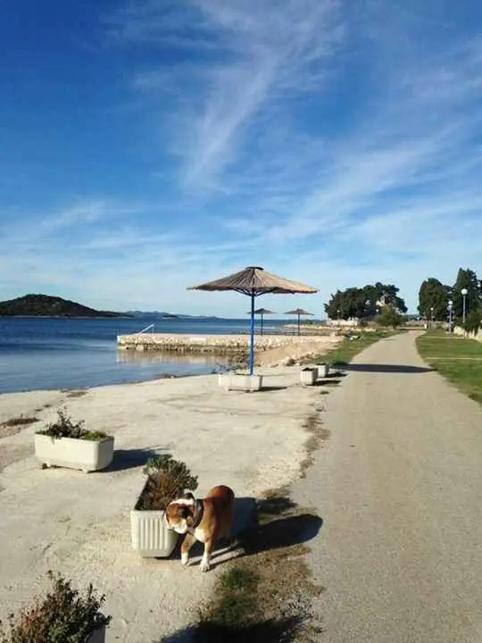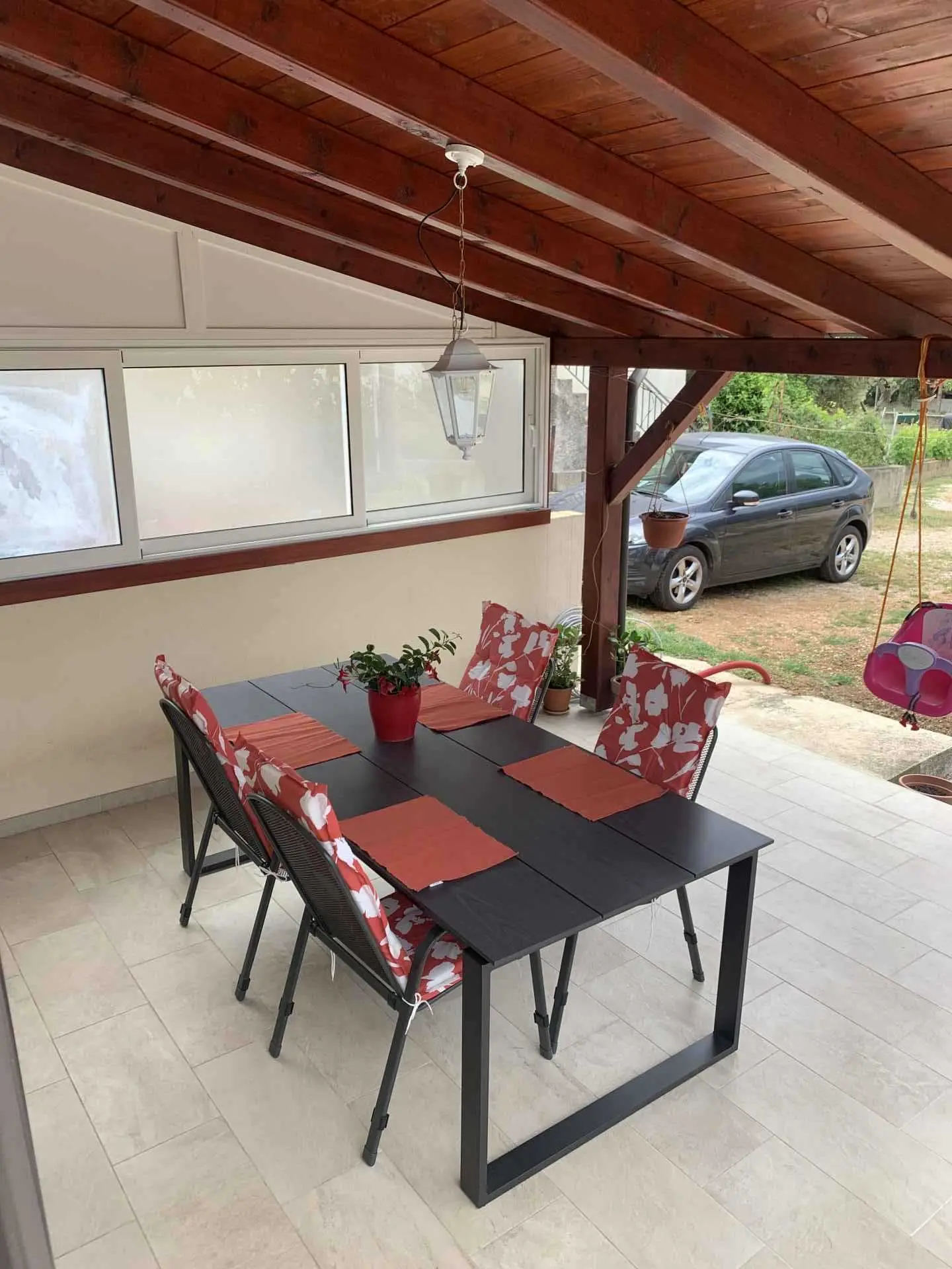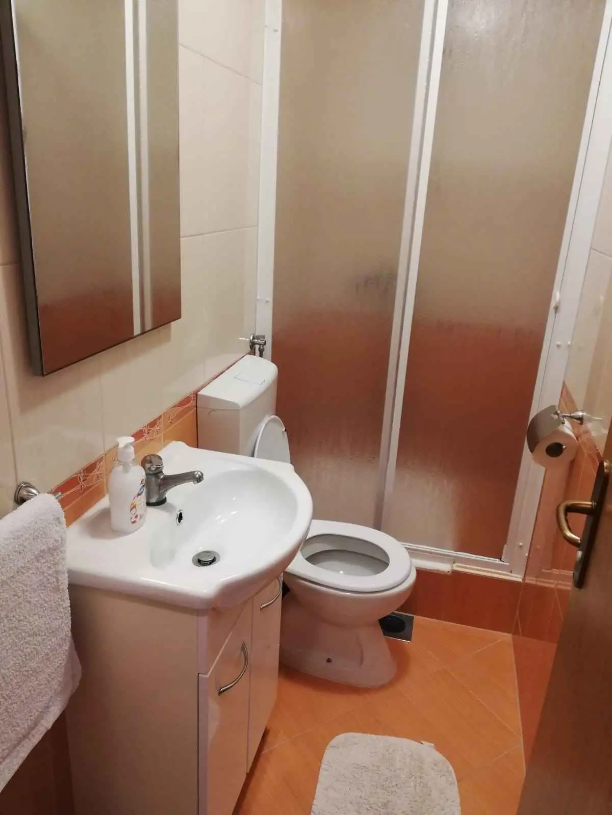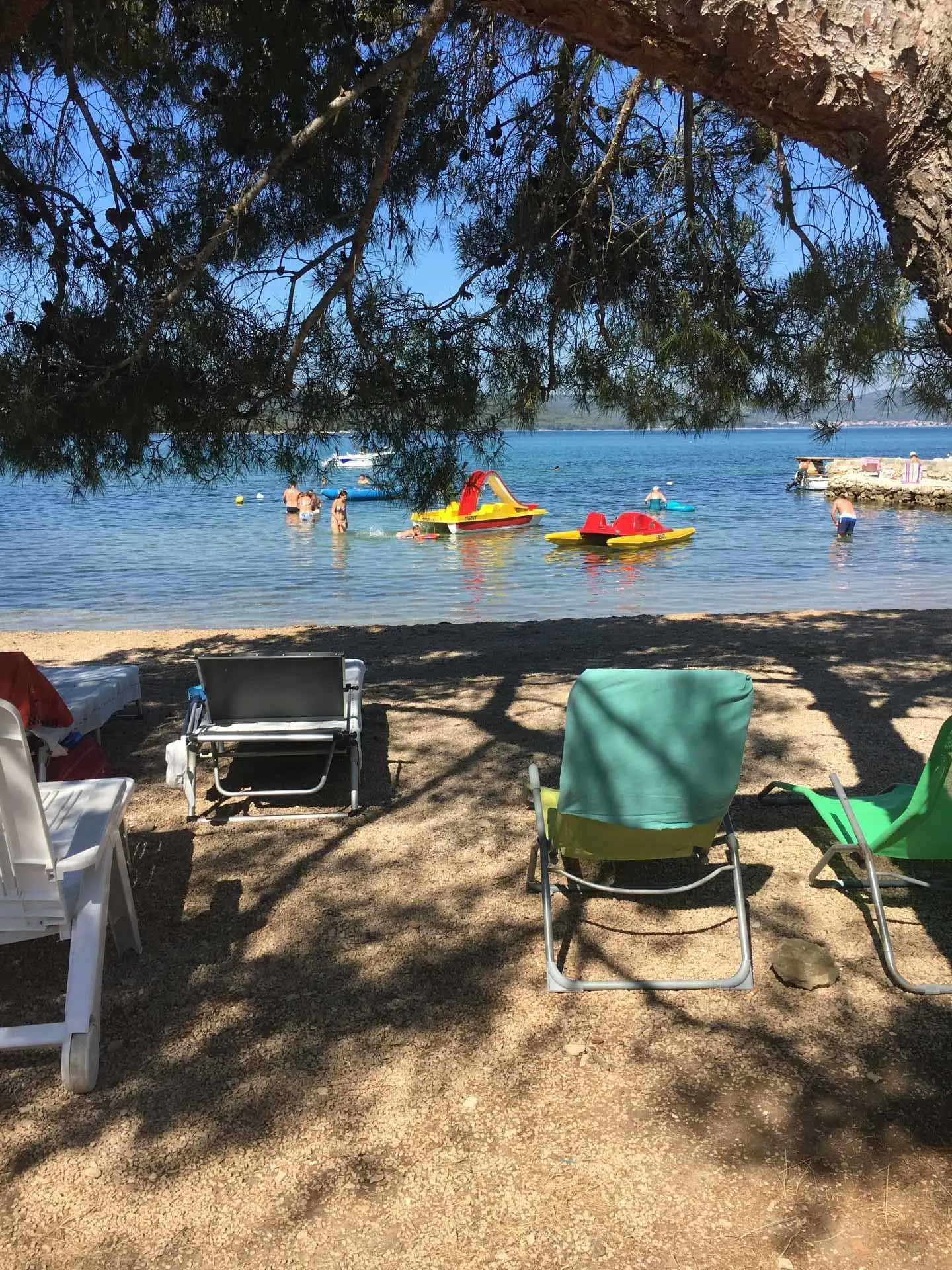Jednosobni apartman u prizemlju kuce 45m2 s natkrivenom terasom od 15 m2, koji je udaljen od plaze samo 150 m. U sobi je bračni krevet i krevet za jednu osobu. Dnevni boravak ima kauč na razvlačenje. Opremljen je klimom, Sat-TV , vesmasinom. Kuhinja je kompletno opremljena , sa velikim frižiderima sa dubokim zamrzavanjem.