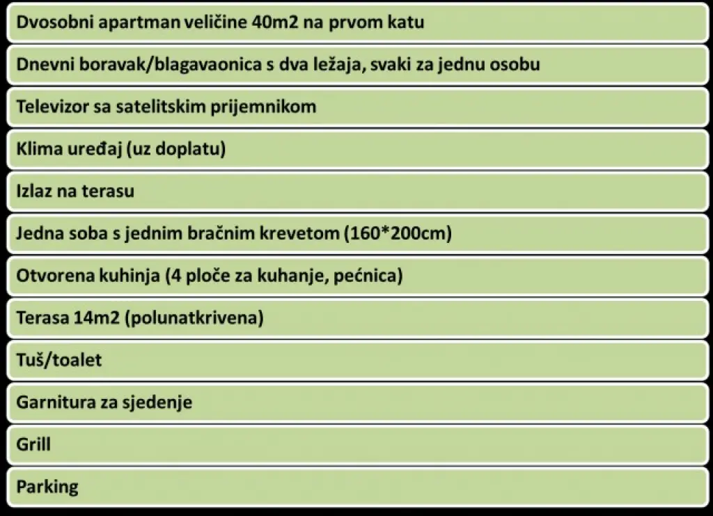 5 €/noć - Klima uređaj (korištenje se dodatno naplaćuje)