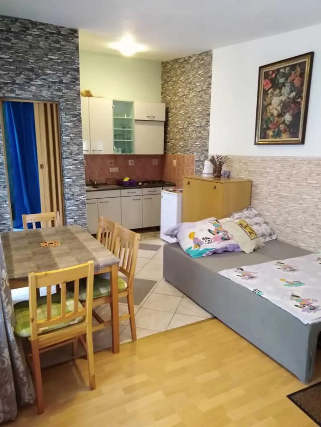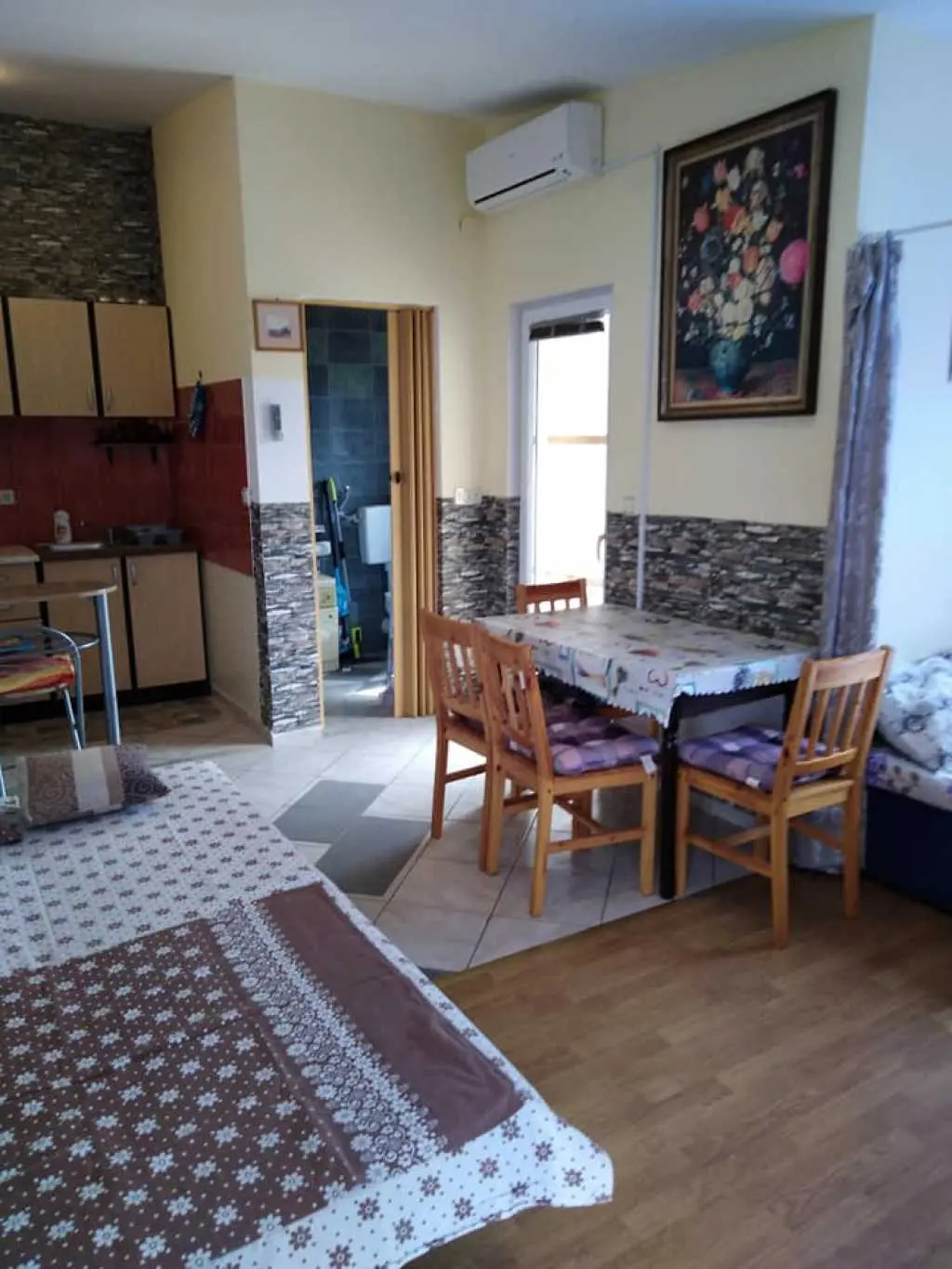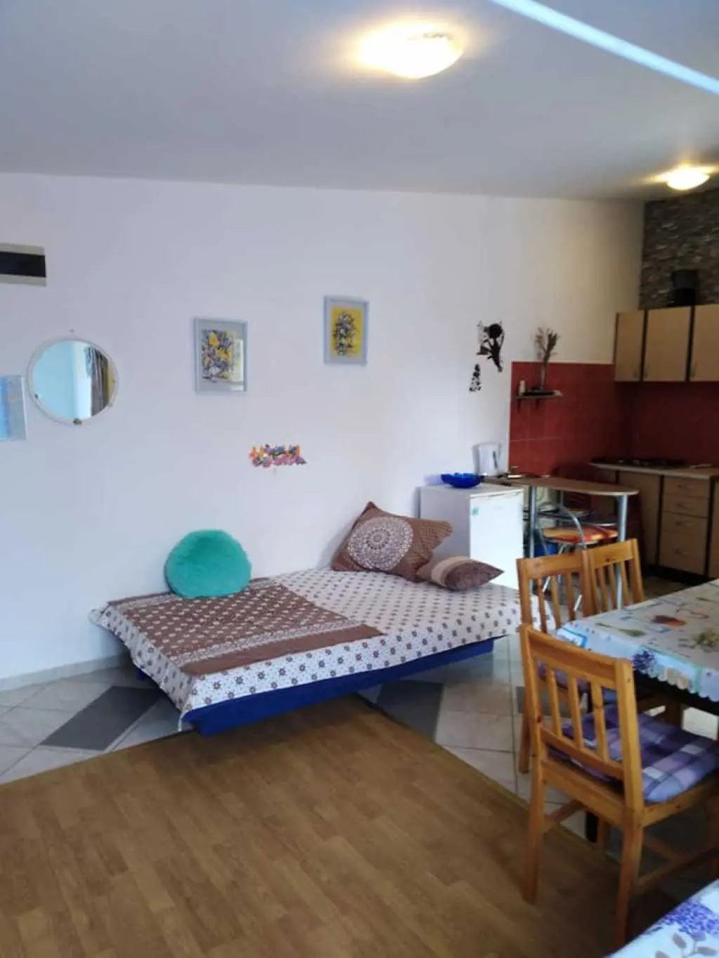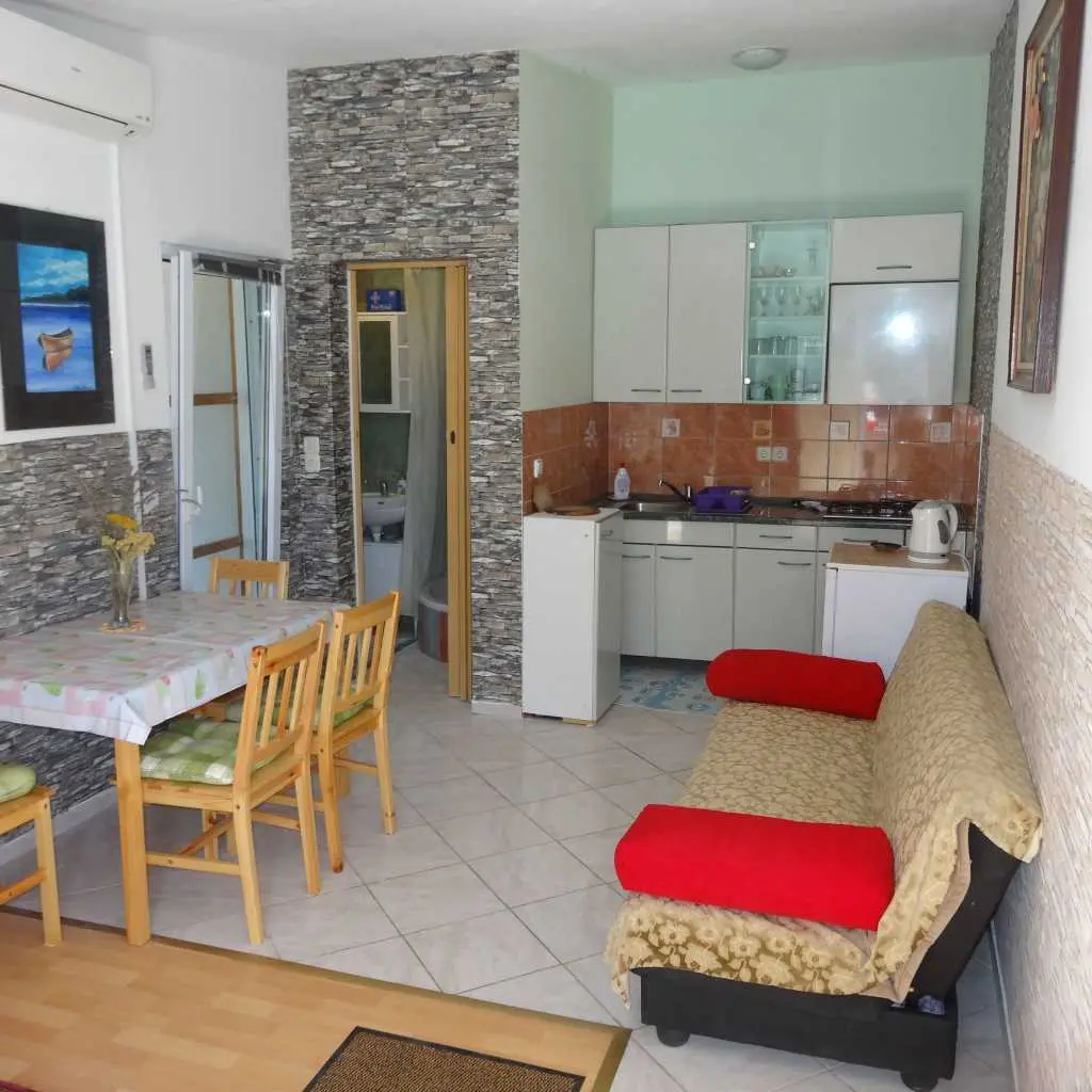 2 studio apartmana sa 4 i 4 ležaja, namješteni, klimatizirani, na katu, roštilj, parking, miran dio, 600m do mora, 200 m do dučana. Apartmani se iznajmljuju tijekom cijele godine. Dodite i sami se uvjerite o udobnosti i ugodnosti boravka, ljepote plaza, cistog bisernog mora i jos sto sta drugih ljepota. Sobom mozete povesti i kucnog ljubimca.
