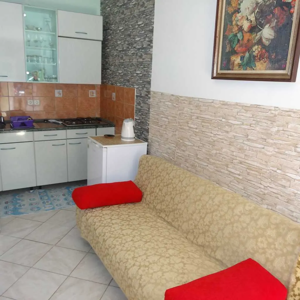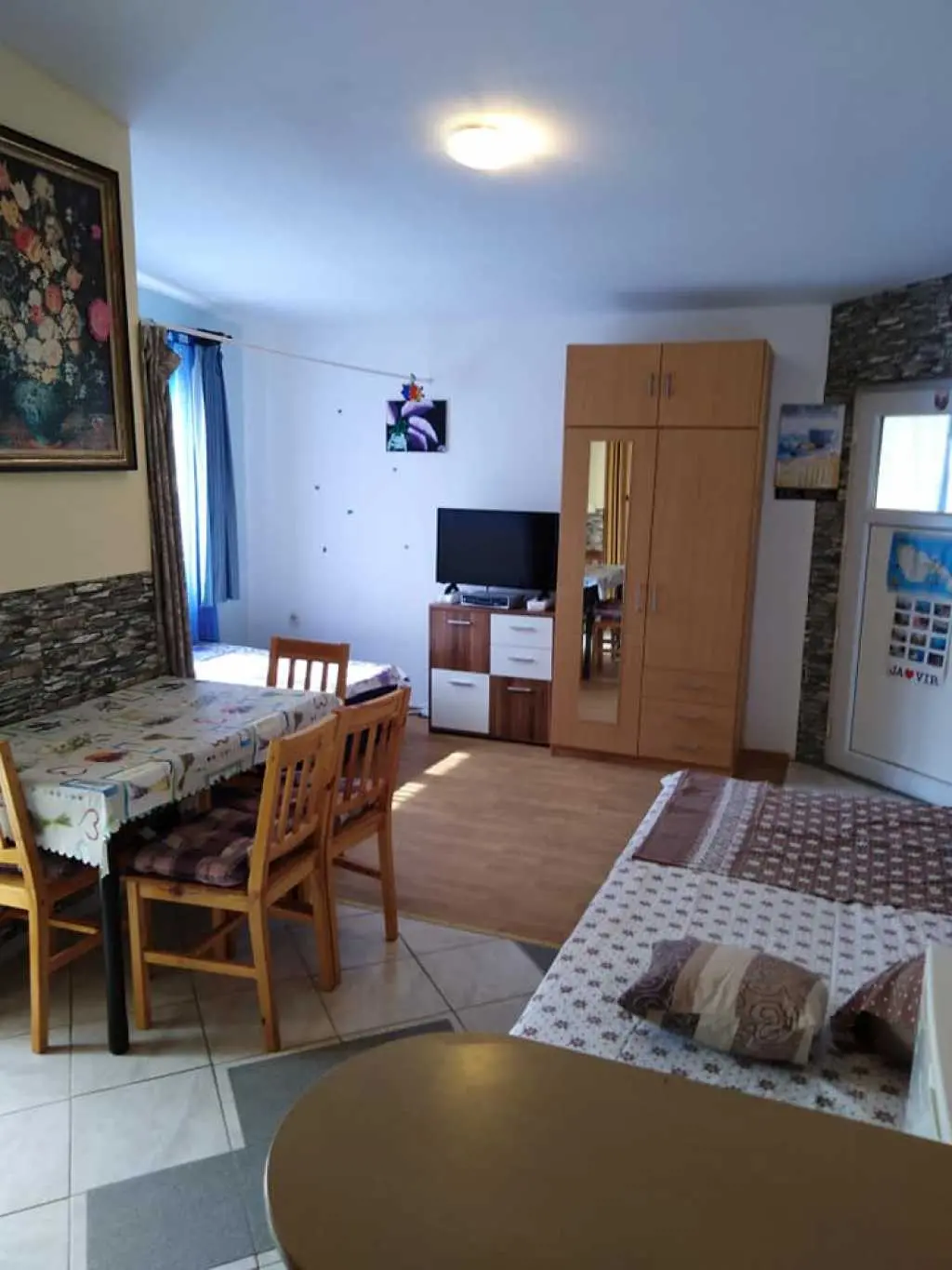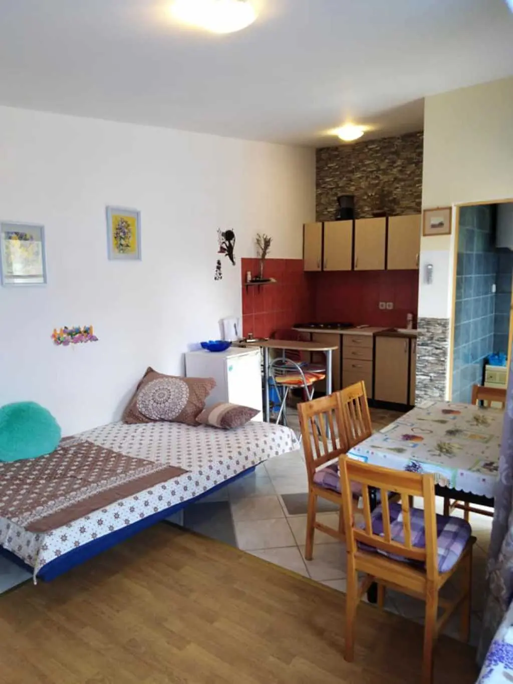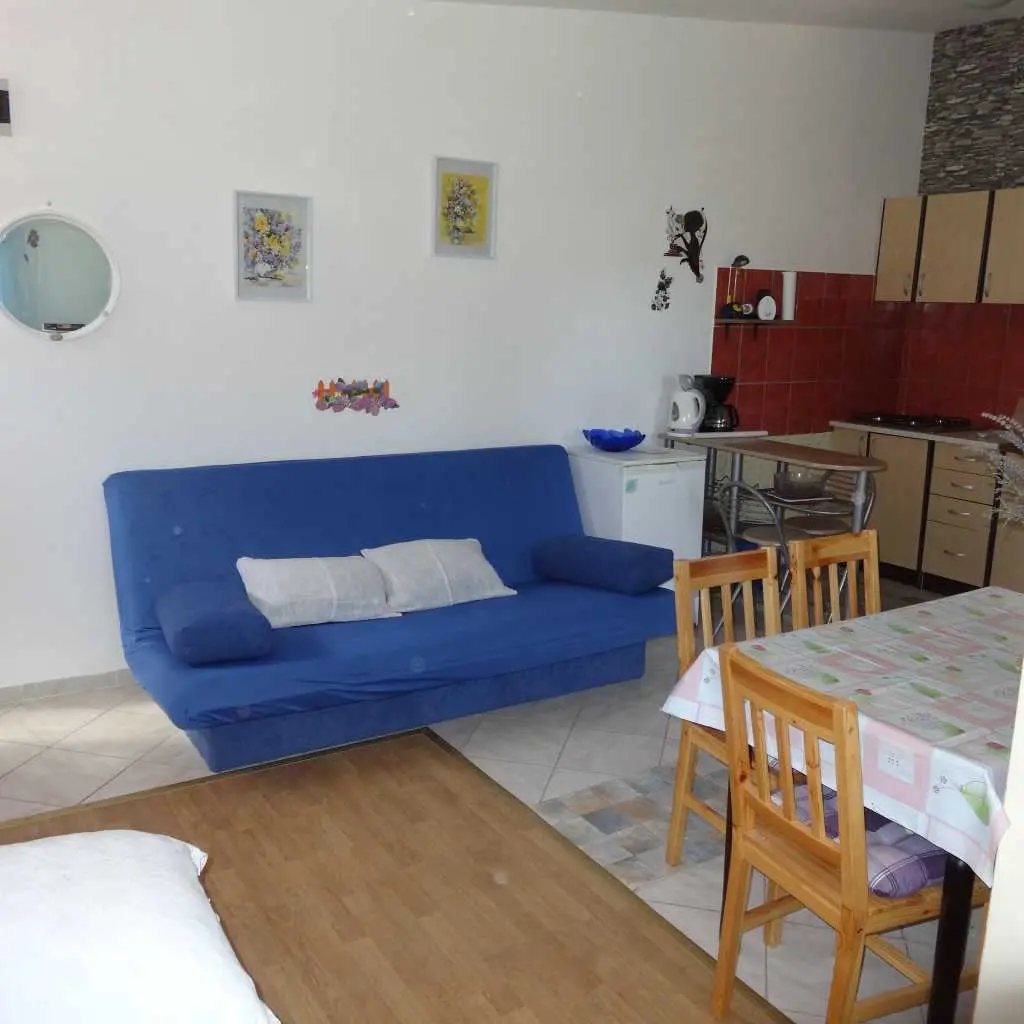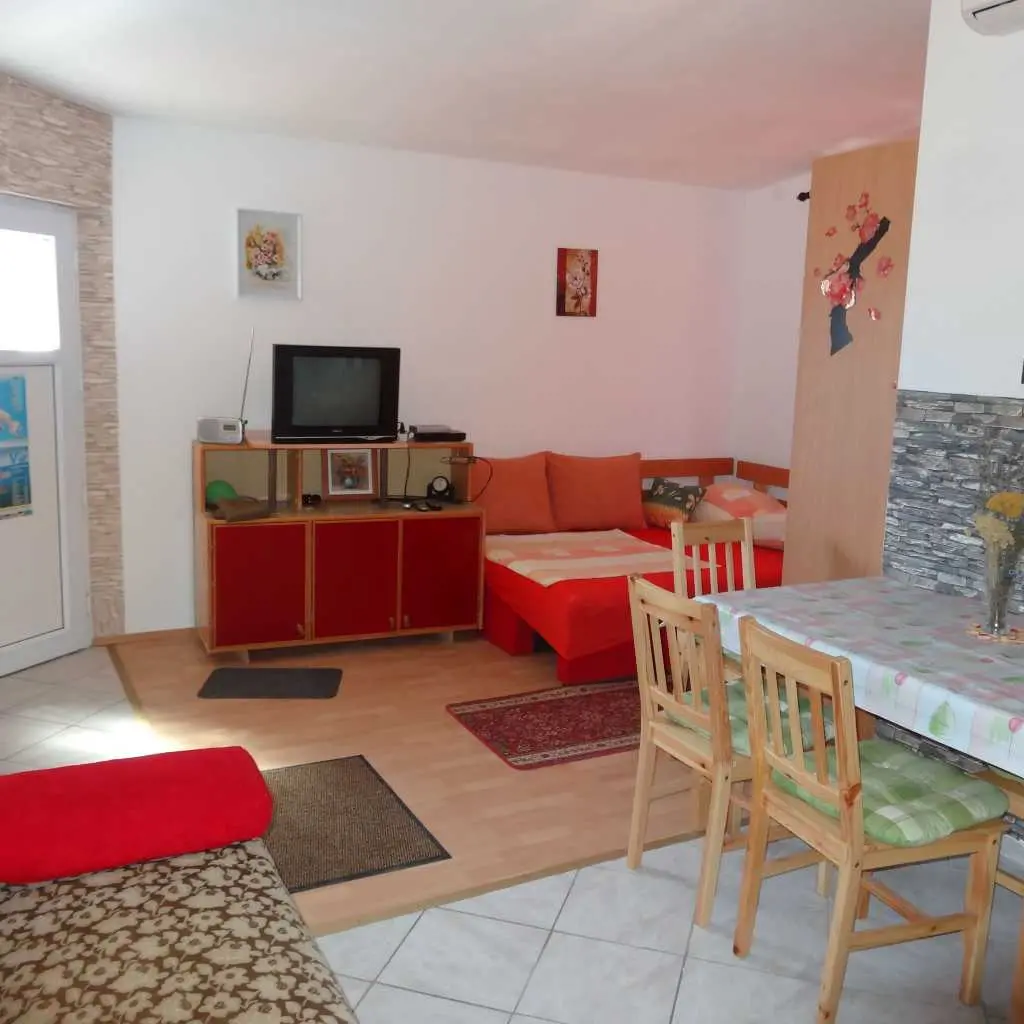 2 studio apartmana sa 4 i 4 ležaja, namješteni, klimatizirani, na katu, roštilj, parking, miran dio, 600m do mora, 200 m do dučana. Apartmani se iznajmljuju tijekom cijele godine. Dodite i sami se uvjerite o udobnosti i ugodnosti boravka, ljepote plaza, cistog bisernog mora i jos sto sta drugih ljepota. Sobom mozete povesti i kucnog ljubimca.