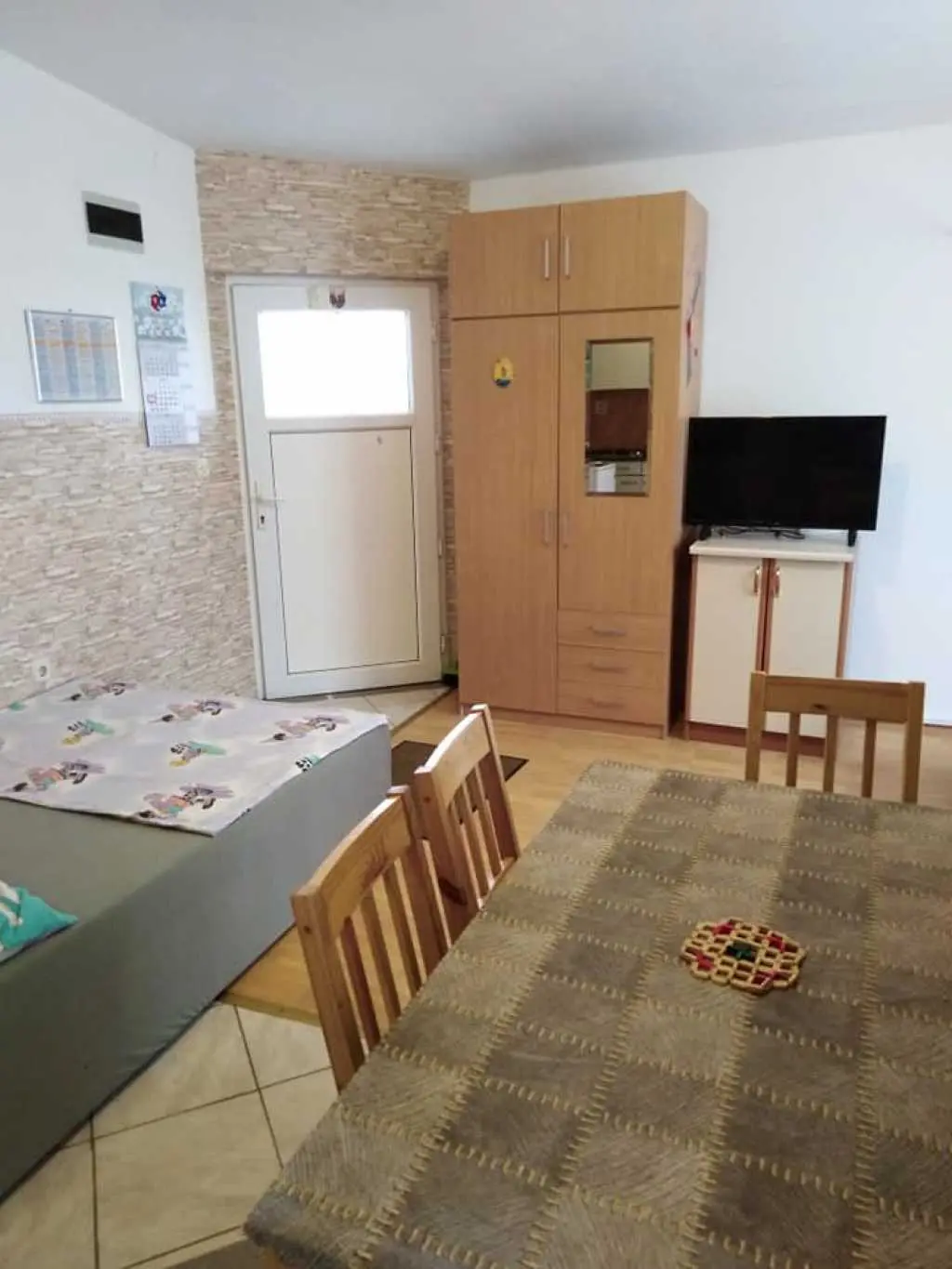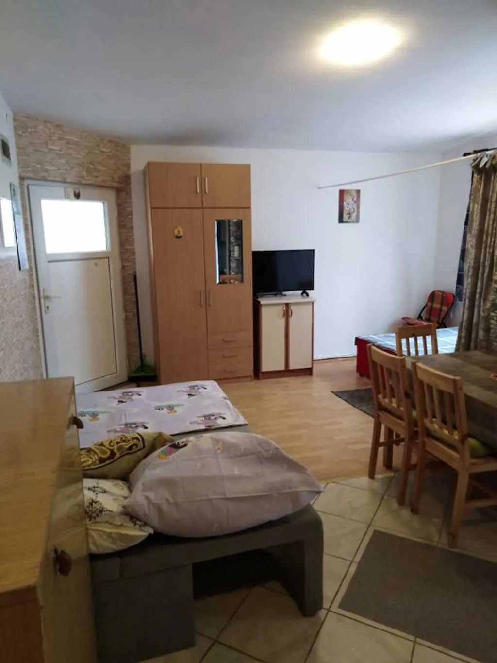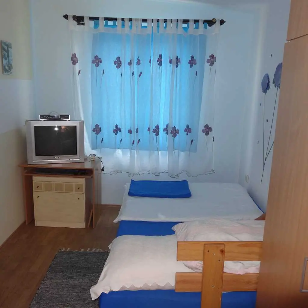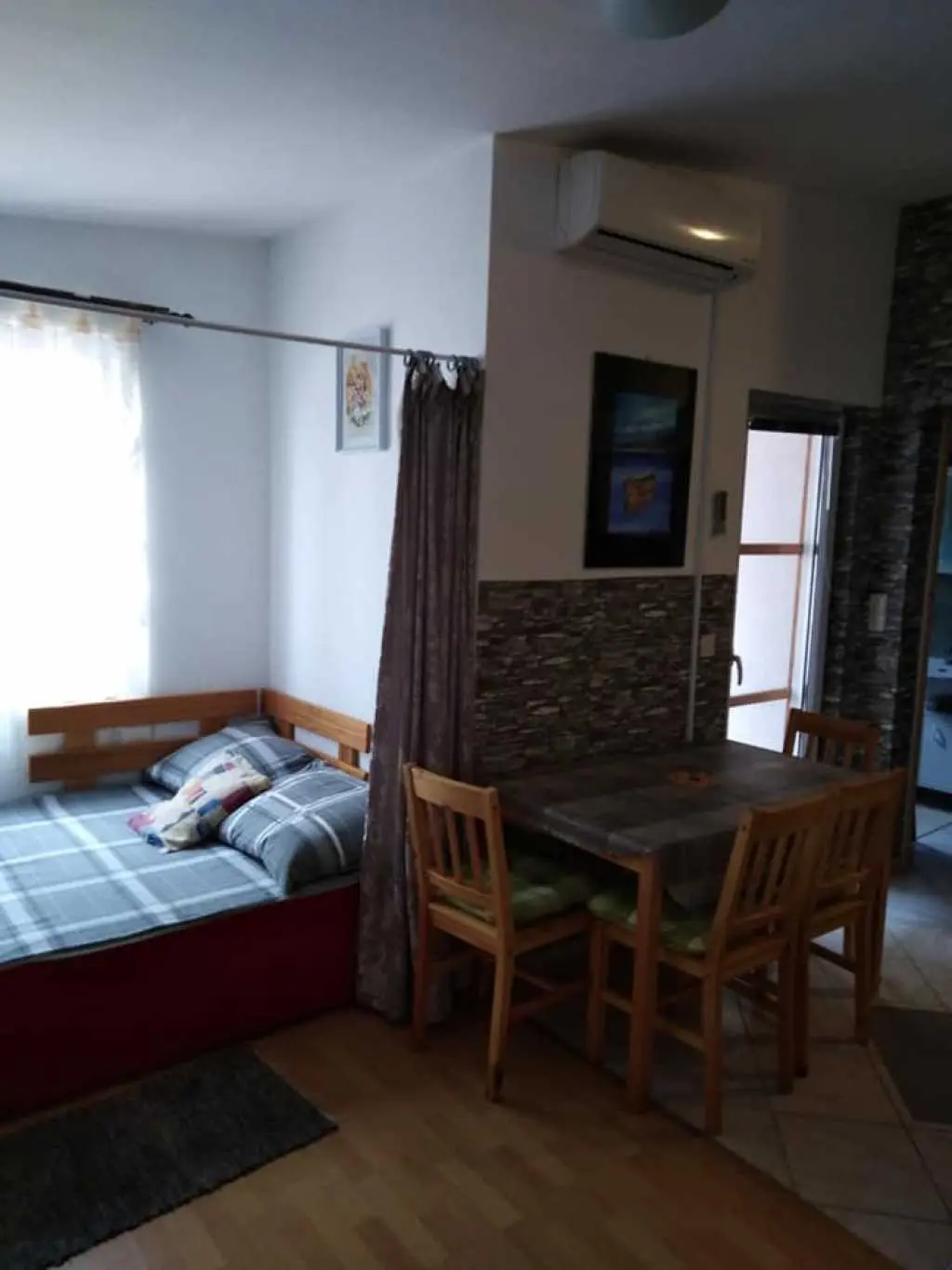 2 studio apartmana sa 4 i 4 ležaja, namješteni, klimatizirani, na katu, roštilj, parking, miran dio, 600m do mora, 200 m do dučana. Apartmani se iznajmljuju tijekom cijele godine. Dodite i sami se uvjerite o udobnosti i ugodnosti boravka, ljepote plaza, cistog bisernog mora i jos sto sta drugih ljepota. Sobom mozete povesti i kucnog ljubimca.