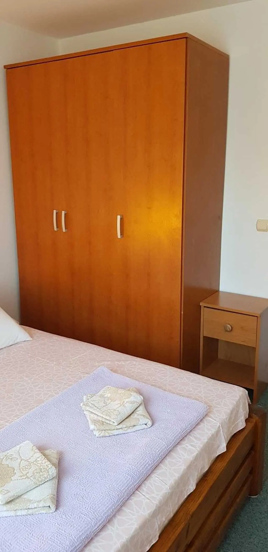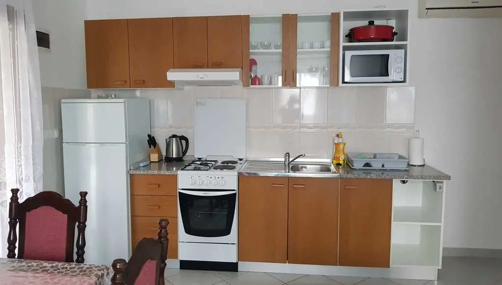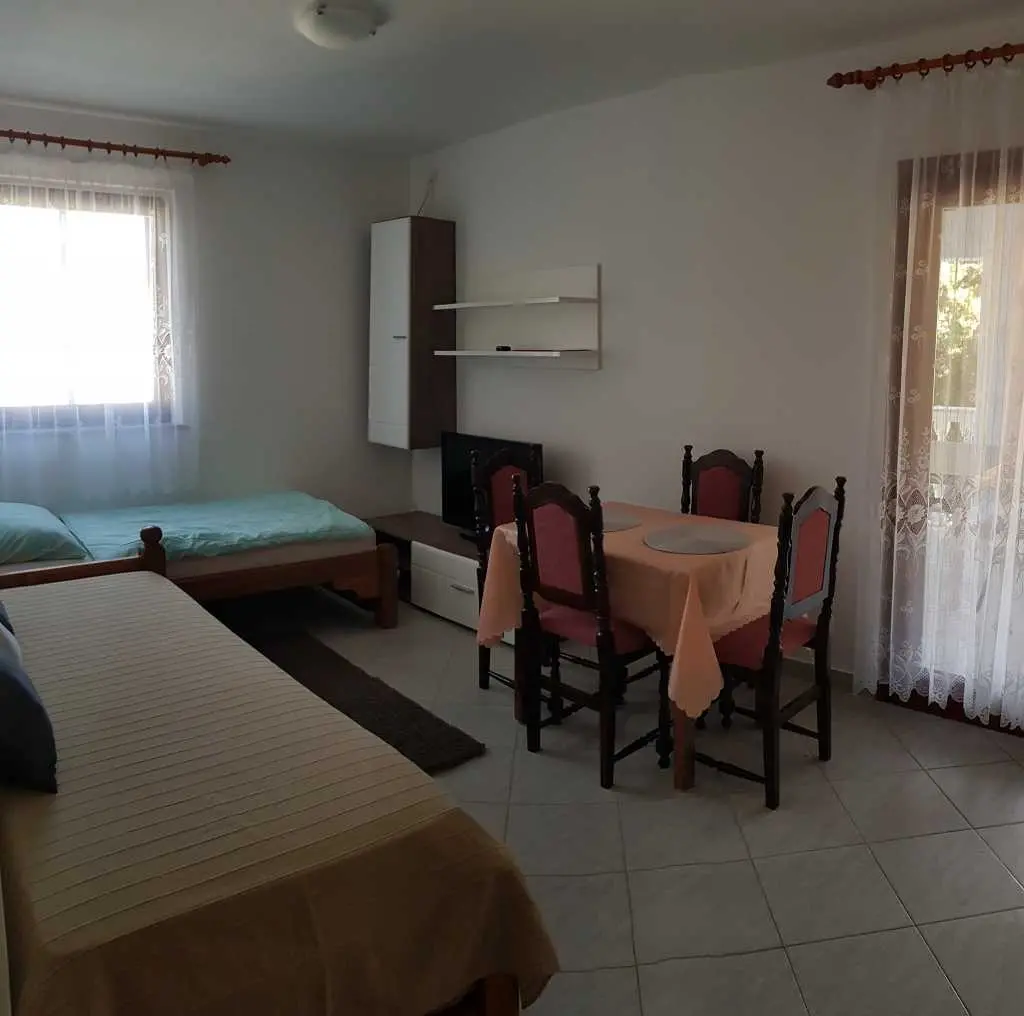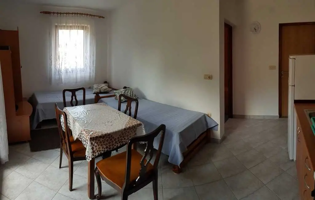 V rodinnom dome sme mali prenajate poschodie s dvomi apartmánmi,na prizemí bývali majitelia.Ubytovanie bolo čisté,nenáročné na upratovanie,v kuchynke bola plná výbava,funkčná klíma,veľká chladnička,majitelia veľmi ochotne komunikovali,poradili.K moru sme zbehli len dolu ulicou,bolo blízko.Veľmi sa nám páčilo,,,<3.