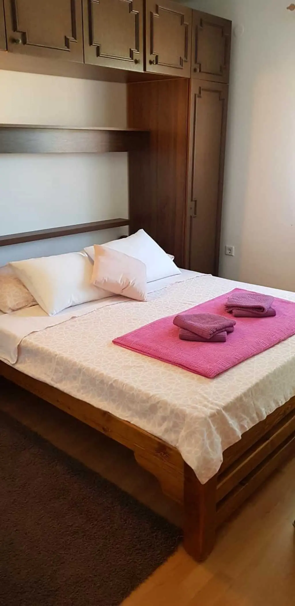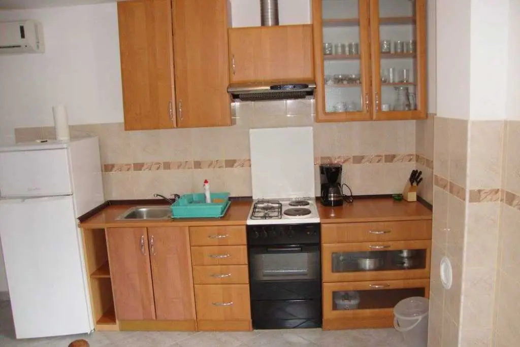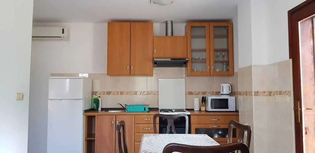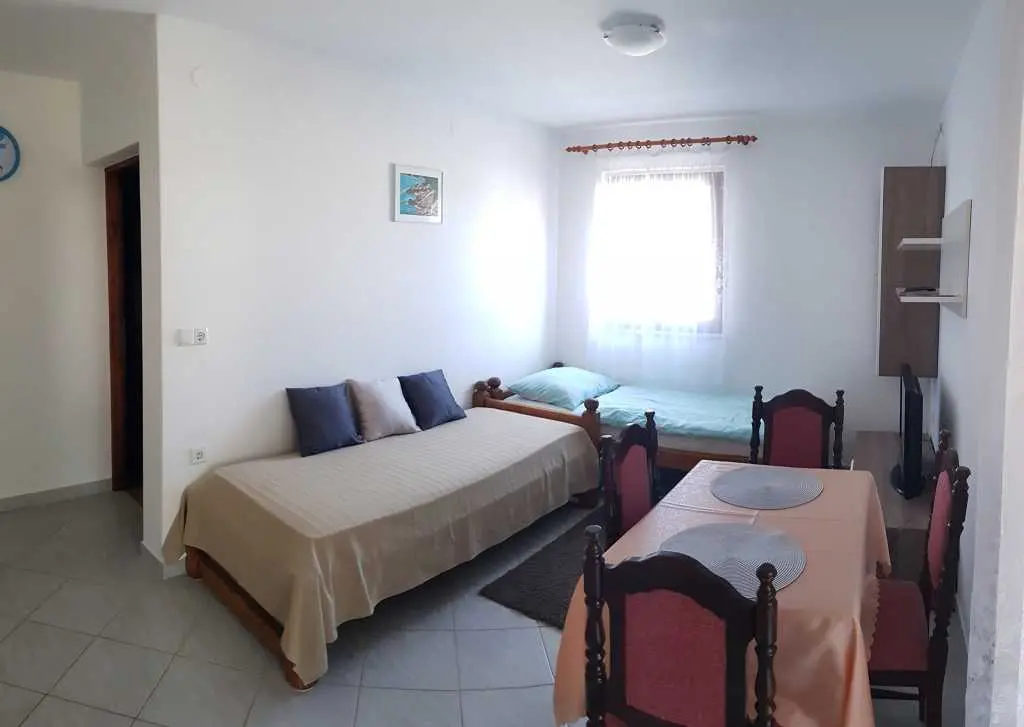 V rodinnom dome sme mali prenajate poschodie s dvomi apartmánmi,na prizemí bývali majitelia.Ubytovanie bolo čisté,nenáročné na upratovanie,v kuchynke bola plná výbava,funkčná klíma,veľká chladnička,majitelia veľmi ochotne komunikovali,poradili.K moru sme zbehli len dolu ulicou,bolo blízko.Veľmi sa nám páčilo,,,<3.
