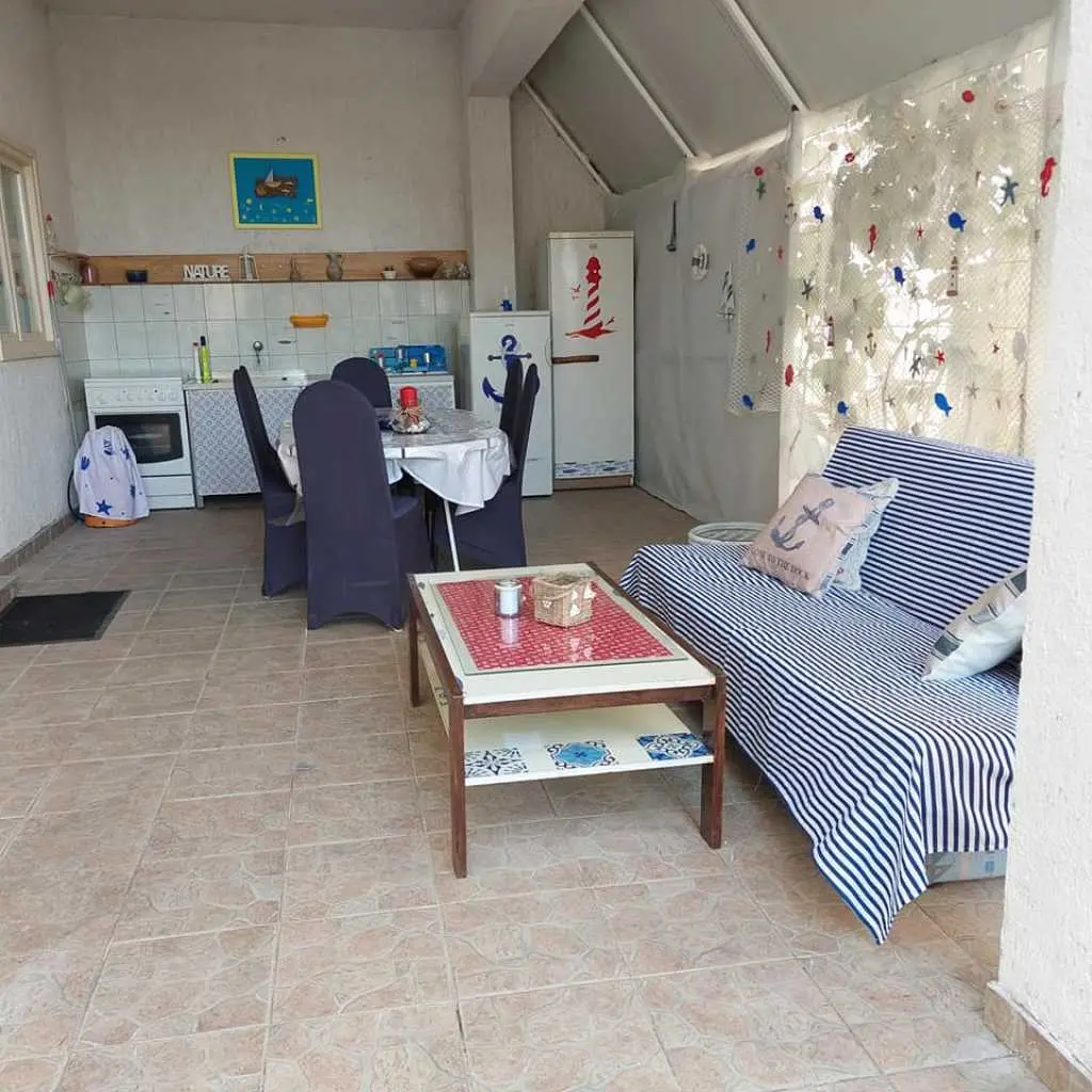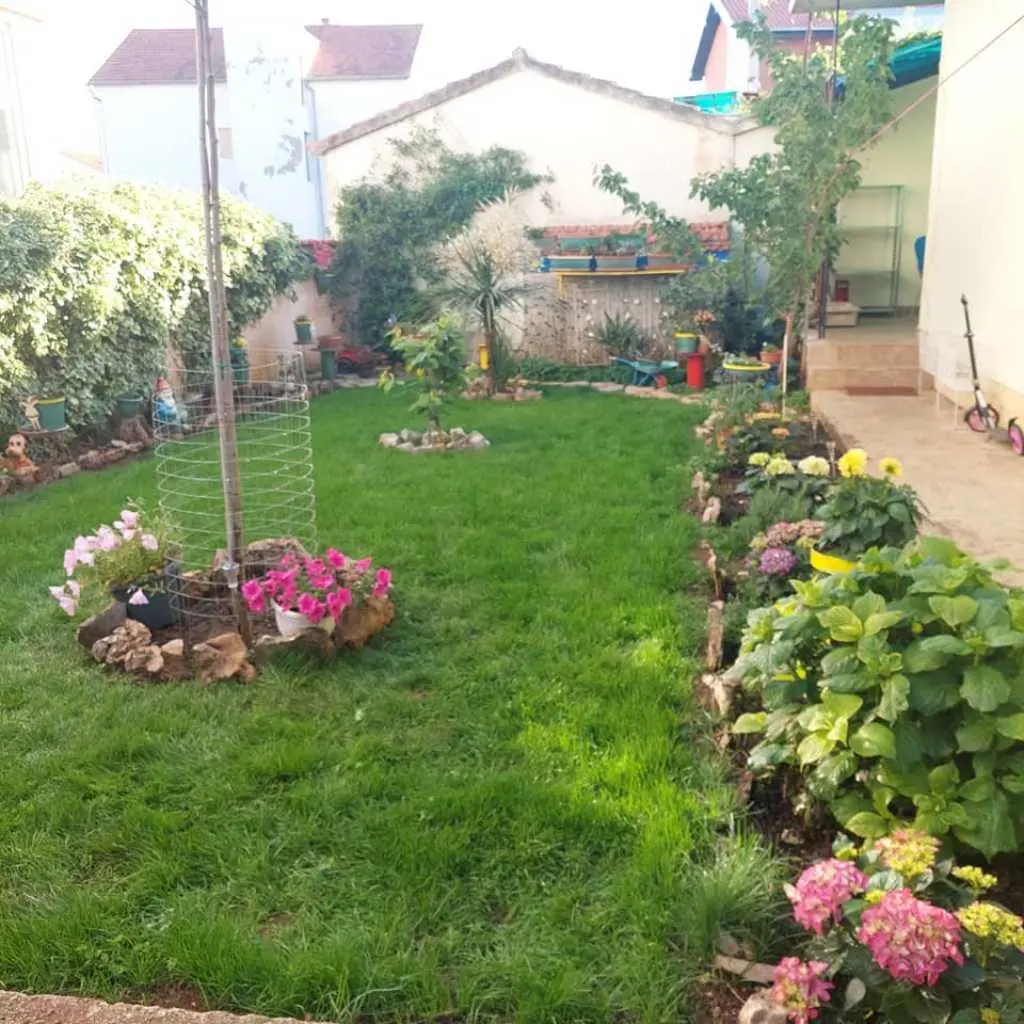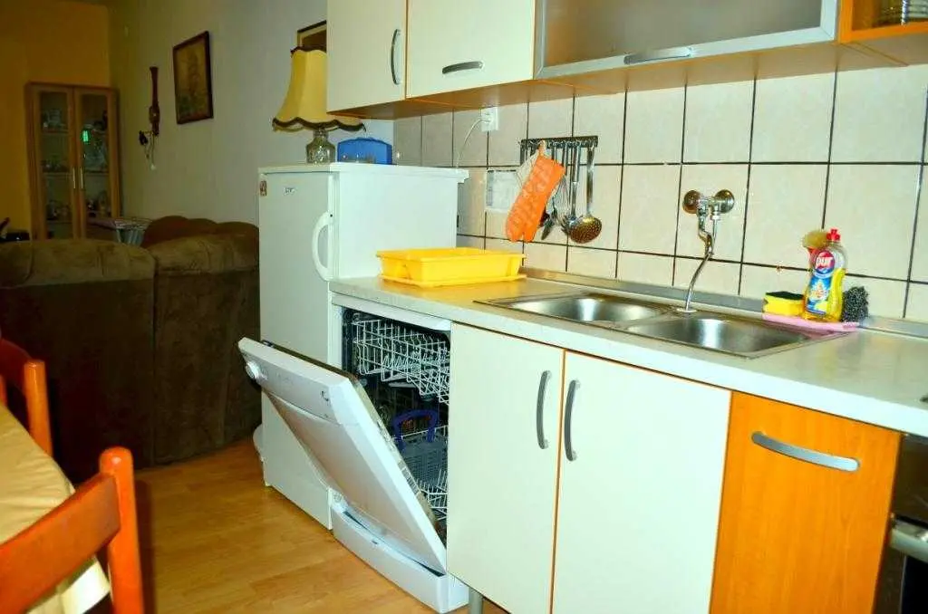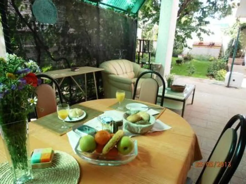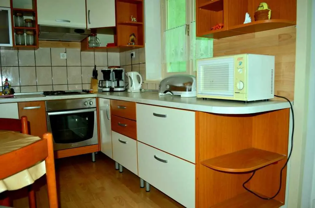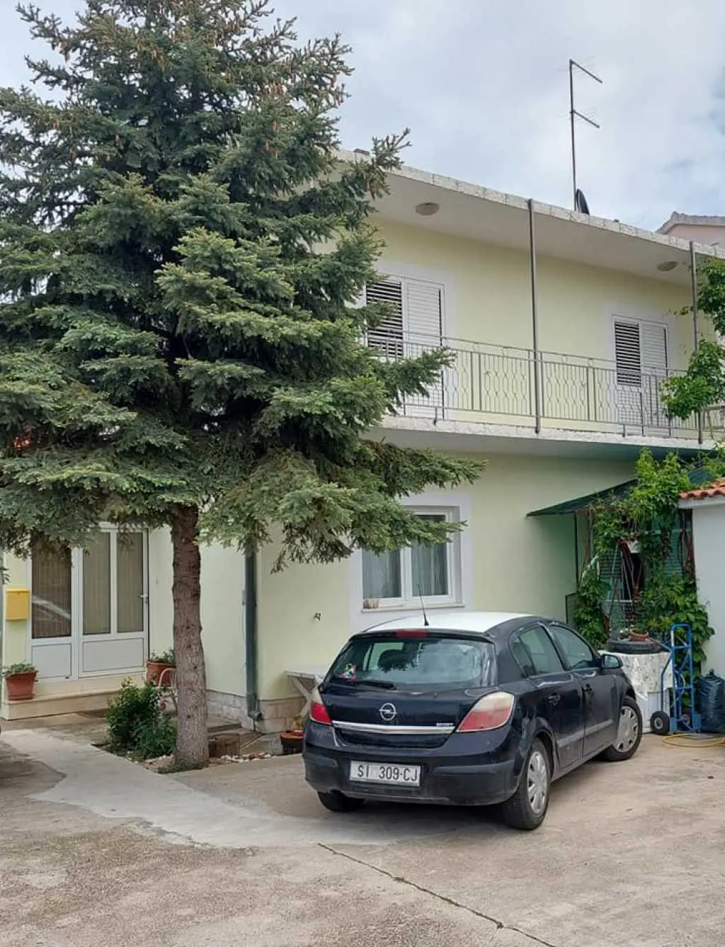 Vodice, komforni klimatizirani apartman 60m2 za 4, 5 ili 6 osoba, nalazi se u prizemlju i odvojen je od obiteljske kuće domaćina, ima svoj poseban ulaz, udaljen 300 m ili 5 min. hoda do plaže, potpuno opremljen (uključujući i perilicu posuđa, mikrovalnu pećnicu i aparat za kavu). Ima dvije spavaće sobe sa bračnim krevetima, blagavaonu, dnevni boravak (udobni kutni kauč na razvlačenje za spavanje još dvije odrasle osobe, TV, radio…), kuhinju, kupatilo . Ispred apartmana nalazi se velika vlastita natkrivena terasa 25 m2,okružena zelenilom na kojoj je također veliki stol sa stolicama za 6 osoba, kauč i mali stolić, a sve zaklonjeno od tuđih pogleda na kojoj imate svoju privatnost i svoj mir. Na terasi postoji i vanjska (dodatna) ljetna kuhinja (još jedan: frižider, sudoper, štednjak, rada površina) koju također možete koristiti. Pogled na ograđen i uređeni zeleni vrt. Apartman ima WI-FI internet i osiguran besplatan parking u dvorištu kuće tako da automobil možete ostaviti u dvorištu i komotno ići na plažu ili u centar mjesta pješice čime izbjegavate dodatno plaćanje parkinga na plažama i u centru. Apartman se nalazi u ulici Ante Lasan Kabalera, najljepšem kvartu grada Vodice, 5 minuta hoda, mirnim, ne baš prometnim uličicama, do najljepših plaža (Hangar), do prve trgovine i pekare samo 1 minut hoda, do supermarketa 5-6 minuta hoda, centra 10 min laganog hoda… Ispred terase je i grill raspoloživ za korištenje gostima. Domaćini su gostoljubivi tihi i nenametljivi ljudi koji su Vam na raspolaganju na Vaše upite o bilo kakvoj korisnoj informaciji o najpovoljnijim ponudama grada Vodice i okolice. Kućni ljubimci dobrodošli. Vodice vam pružaju čisto more, prekrasne sadržajne plaže, bogatu gastronomsku ponudu, mnoštvo kafe-barova, disco-clubova, suvenirnica…tu će te pronaći sve što je potrebno za Vaš odmor, bilo miran kutak i odmor uz more, bilo aktivan život. U blizini Vodica nalaze se čak dva nacionalna parka Krka i Kornati. Cijena se kreće od 50-90 eura/noć, ovisno o terminu, broju osoba i ostalim okolnostima. U cijenu uključeno korištenje klimatizacije, boravišna turistička taksa, parking, wi-fi Internet
