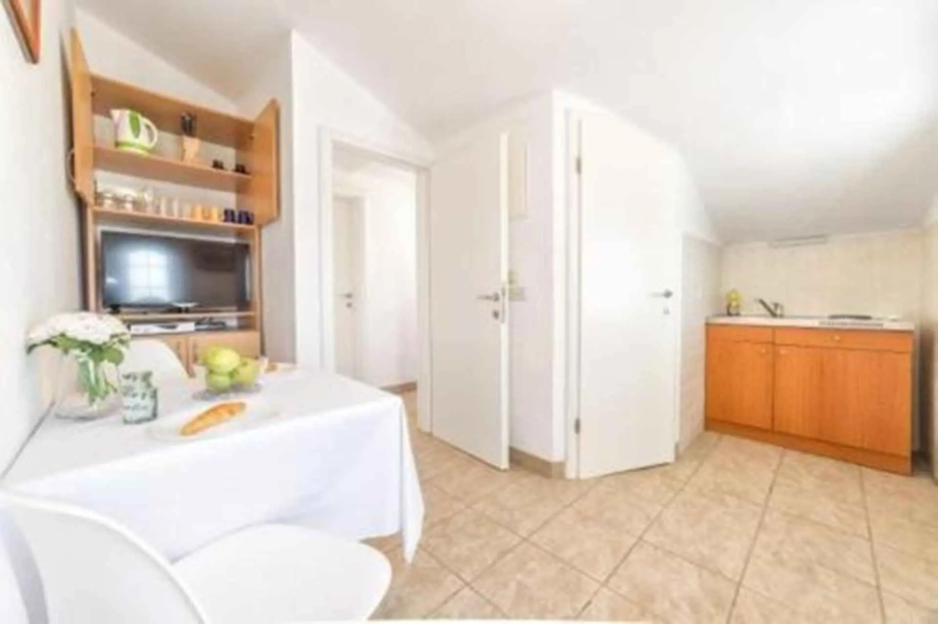 Apartmani Nikol u ponudi imaju tri apartmana. Apartmani imaju WiFi, klimu i TV. Vanjski bazen, vanjski tuš, roštilj, dvorište i parking zajednički su svim jedinicama ovog objekta. Dva apartmana imaju potpuno opremljenu kuhinju, dok drugi ima čajnu kuhinju. Samo prvi apartman ima perilicu rublja.