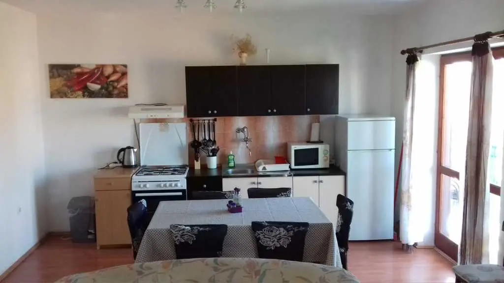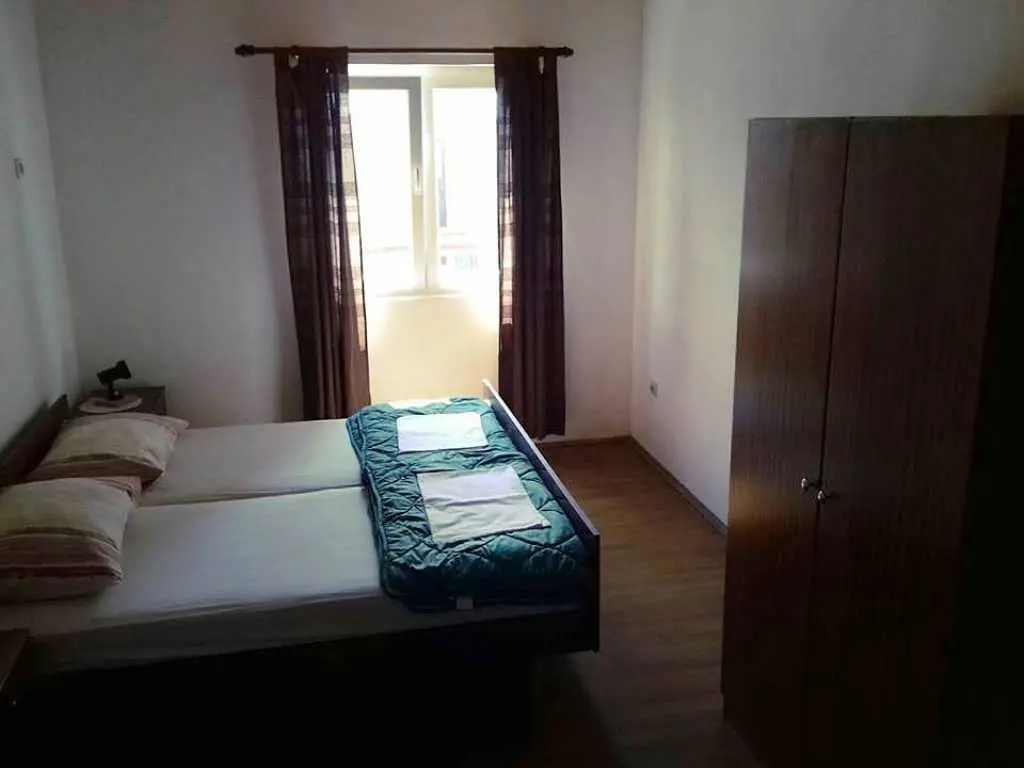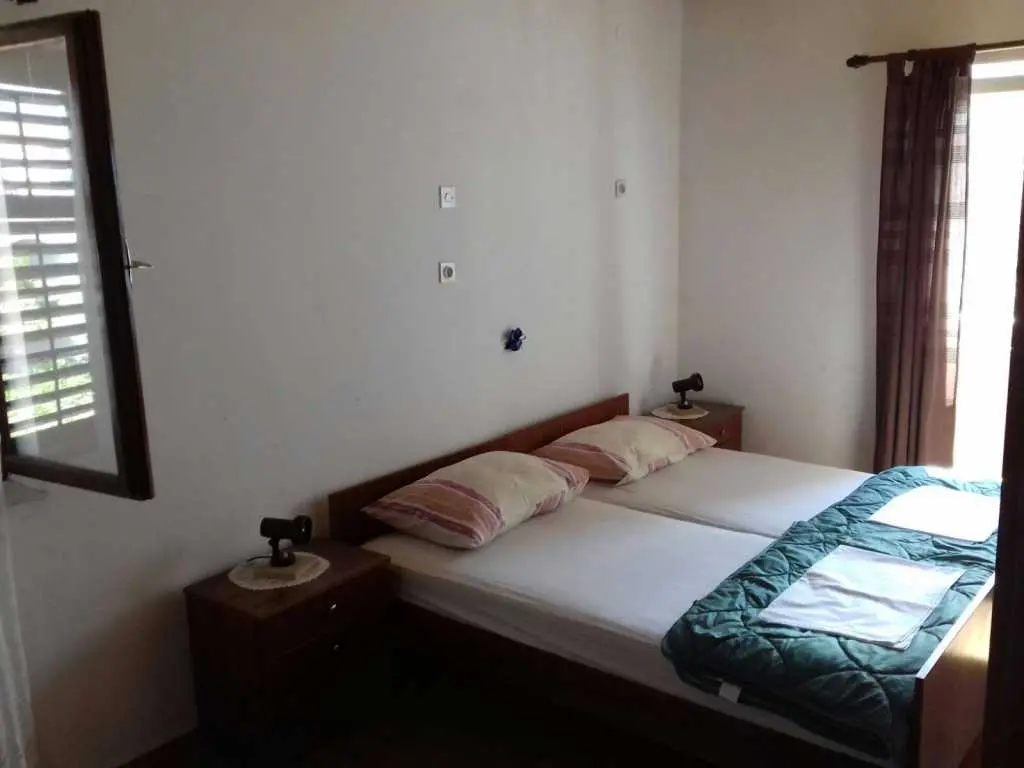 Apartman se nalazi na drugom katu. Udaljen je cca 150 metara od mora. Sastoji se od dnevnog boravka, blagovaonice, kuhinje, balkona, hodnika i tri sobe s vlastitom kupaonicom. Opremljen je televizijom, kuhalom za vodu, mikrovalnom, roštiljem, besplatnim internetom (wi-fi) i klimom. Parking max. 3 auta. Apartman se nalazi u prizemlju. Udaljen je cca 150 metara od mora. Sastoji se od dnevnog boravka, blagovaonice, kuhinje, wc/kupaonice, ostave, trijema i jedne sobe. U dnevnom boravku se nalazi kauč za razvlačenje (max. dvije odrasle osobe). Opremljen je televizijom, kuhalom za vodu, mikrovalnom, roštiljem, besplatnim internetom (wi-fi) i klimom. Parking s nadstrešnicom za auto.