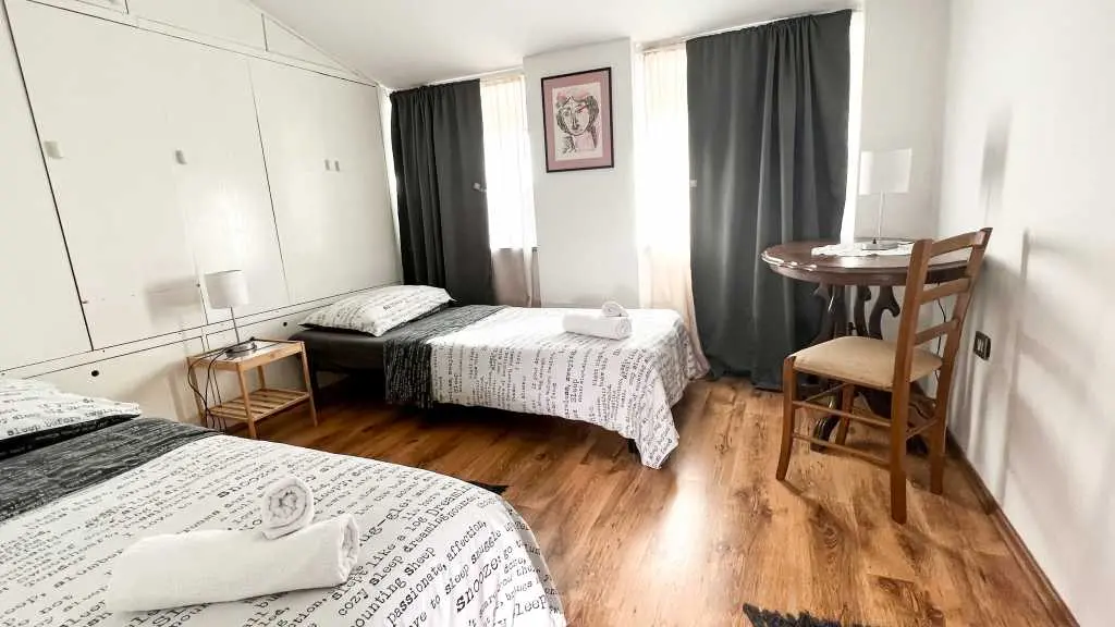 Ako svoj odmor želite provesti s obitelji, prijateljima i kućnim ljubimcima u netaknutoj prirodi, uživati u suncu i moru ili isprobati istarske specijalitete, nudimo smještaj u ugodnom i prostranom apartmanu (veliki dnevni boravak i kuhinja s otvorenim prostorom, tri spavaće sobe, dvije kupaonice plus zaseban wc i terasa s pogledom na more). U krugu od 100 metara nalaze se trgovina prehrambenih proizvoda i ostale trgovine, restorani, pošta i ljekarna. Smješten je u Vodnjanu, na 144 m nadmorske visine, grad je u jugoistočnoj Istri, 5 km od mora i 10 km od Pule i zračne luke. Vodnjan je poznat po maslinovom ulju i vinu. Grad koji je sačuvao srednjovjekovni izgled obiluje brojnim crkvama, a crkva Svetog Blaža sadrži brojna umjetnička i kulturno vrijedna djela i zbirku sakralne umjetnosti. Možete uživati u mnogim biciklističkim stazama. Na 5 km od Vodnjana, okrenut Nacionalnom parku Brijuni, nalazi se nekoliko opremljenih plaža, kao i prelijepe prirodne plaže. Radujemo se što ću vam dobrodošlicu i zaželjeti ugodan boravak! Lokacija 44 ° 57'45,7 "N 13 ° 51'18.0" E 44.962691, 13.854998