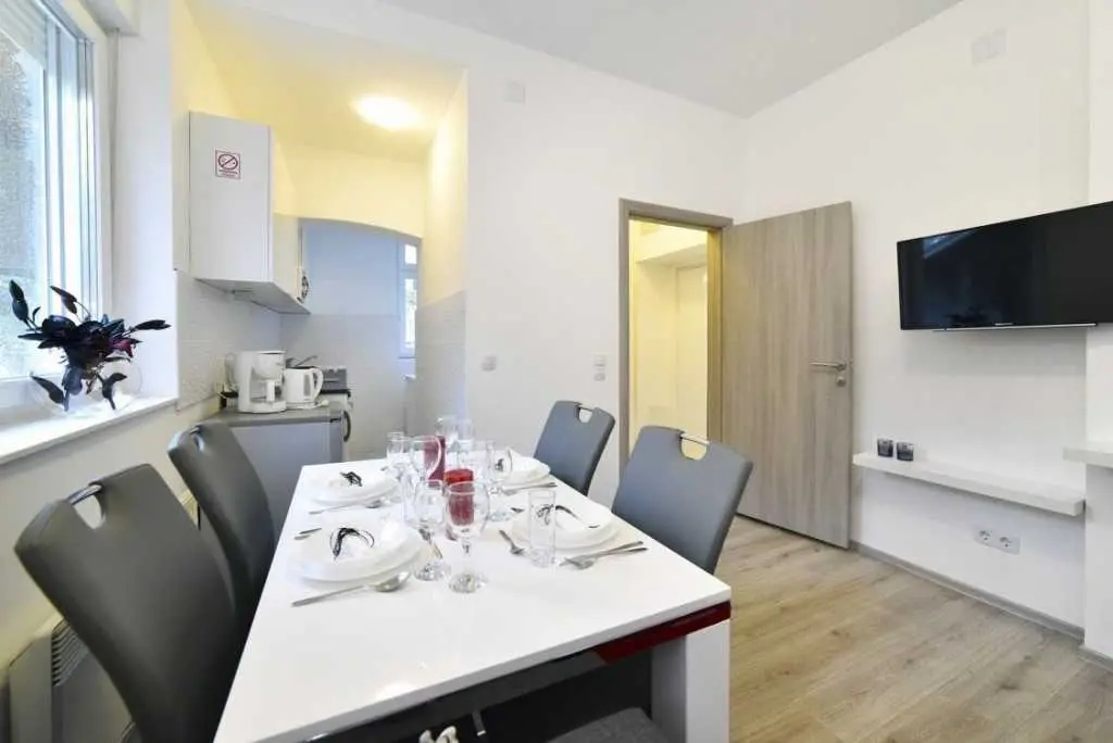 Apartman Sermazi smješten je neposredno uz koncertnu dvoranu Vatroslav Lisinski. Klimatiziran je te uključuje bežični pristup internetu. Osim spavaće sobe s velikim krevetom, dnevni boravak uključuje: prostor za sjedenje, TV ravnog ekrana sa satelitskim programom i opremljenom kuhinjom s hladnjakom, mikrovalna, pećnica, perilica za suđe, perilica za veš, toster, aparat za filter kavu, itd. Također obuhvaća kupaonu s tušem. Gostima je na raspolaganju sef i parkirno mjesto. Do središta Zagreba u kojem su dostupni kafići i restorani u kojima se poslužuju jela domaće i međunarodne kuhinje treba 15-ak minuta šetnje. Muzej Mimara udaljen je 1,5 km, a HNK nalazi se 2 km od apartmana Sermazi. Tzv. „Bandićeve“ fontane udaljene su svega 200 metara. Glavni željeznički kolodvor smješten je 550 metara od objekta. Autobusni kolodvor 2 km, Arena Zagreb 6,5 km, jezero Bundek 3 km, a jezero Jarun 6 km. Do zračne luke 14 km. Za sve informacije, upite i rezervacije obratite nam se putem telefona: +385911683346 Kaja +385919168907 Goran +385921868800 Zdenko e-maila: kaja.sermazi@gmail.com ili nam jednostavno posaljite poruku u inbox! Vasa Obitelj Sermazi