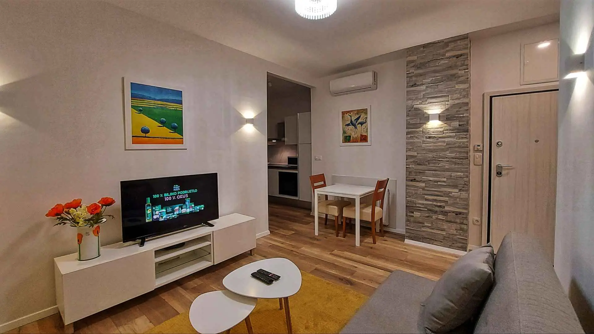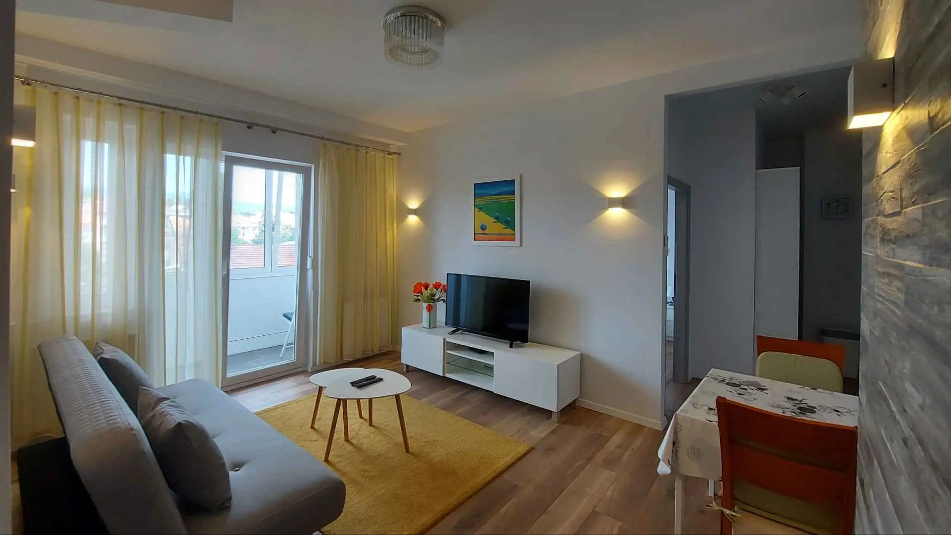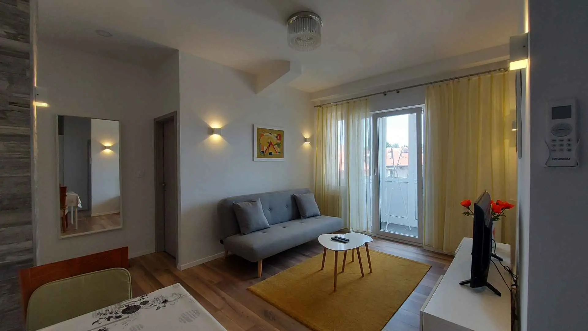 Lijep, moderan i udoban apartman, kategorije 4* i površine 42m2. Nalazi se na vrlo atraktivnoj lokaciji, na samom Kvaternikovom trgu na trećem katu sa prelijepim pogledom. Udaljen od glavnog Zagrebačkog trga oko 1500m. U neposrednoj blizi su dostupni svi javni gradski prijevozi, tramvaj i autobus a preko puta zgrade nalazi se javna garaža dostupna za parking. Veliku pažnju posvećujemo sigurnosti naših apartmana stoga su svi opremljeni protuprovalnim vratima i također video nadzorom u zajedničkom predprostoru. Apartman koristi parkirna mjesta u dvorištu zgrade i u slučaju dostupnosti slobodno ga je koristiti. Rezervacije od dva noćenja na više. Organiziranje zabava u apartmanu nije dozvoljeno! Pušenje u apartmanu nije dozvoljeno! Cijene najma ovise o terminu i broju osoba stoga vas molimo da za detaljnije informacije pošaljete upit ili nazovete na navedeni broj.