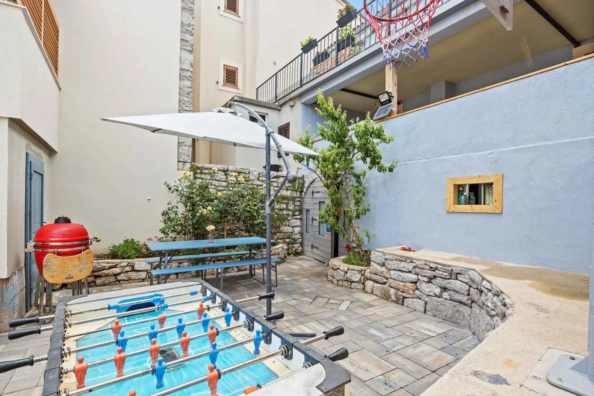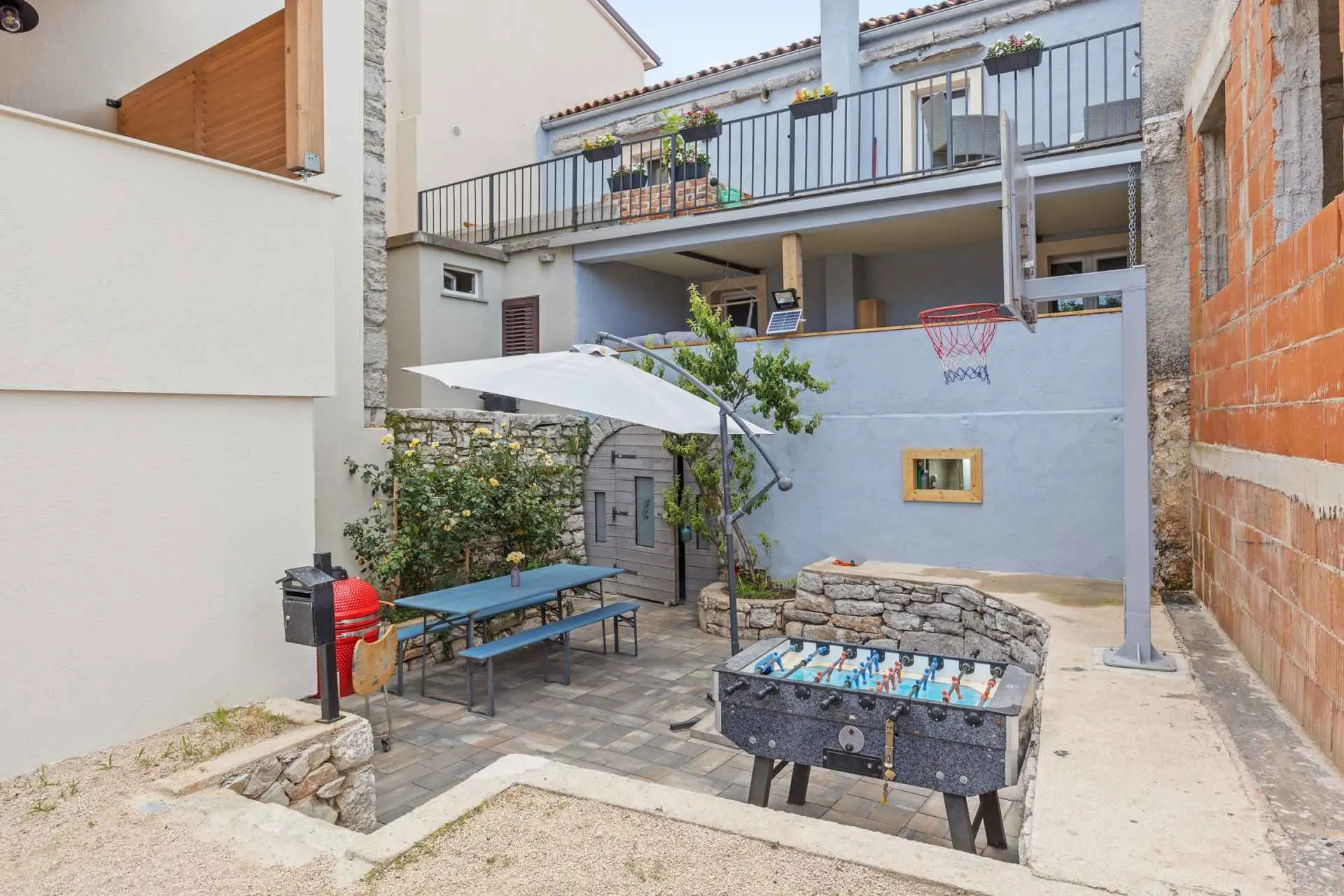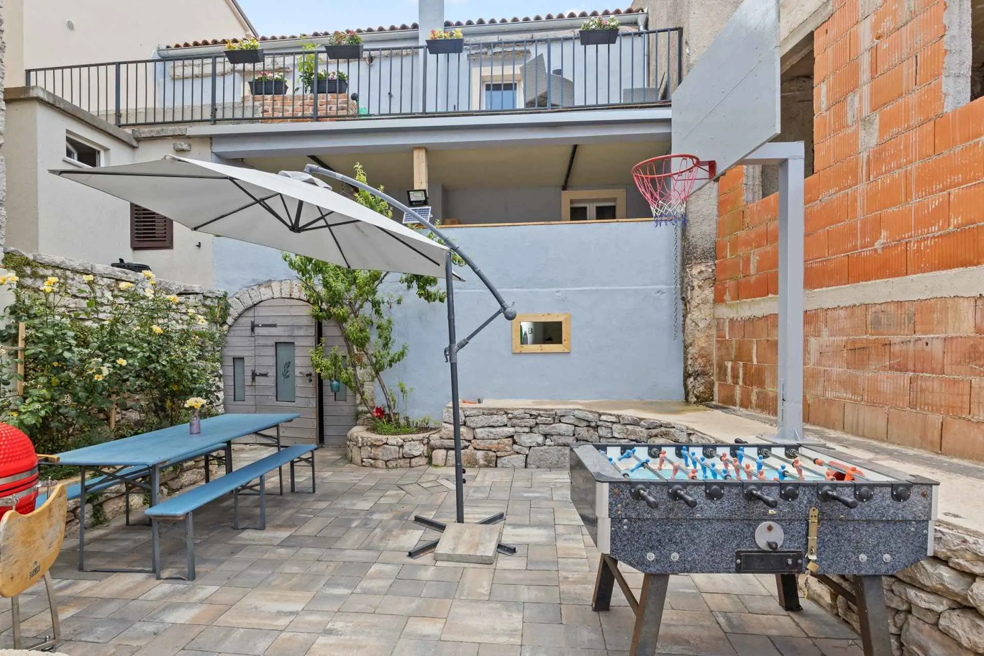 Ova lijepa seoska kuća nalazi se u mjestu Orlec na otoku Cresu (Kvarner). Ako je vaša obitelj u potrazi za mjestom za maksimalno opuštanje, ova kuća je savršena za vas. Nakon dugog dana provedenog na plaži ili u istraživanju okoliša, možete se opustiti u privatnom jacuzzi-ju na balkonu. Stolni nogomet, košarkaški obruč i prostor za roštilj dostupni u dvorištu, čiji su zidovi ukrašeni ružama penjačicama. U sklopu objekta dostupni su besplatno privatno parkiralište, Wi-Fi i klima-uređaj. Prizemlje kuće sastoji se od rustikalnog otvorenog dnevnog boravka s kuhinjom, blagovaonom i izlazom na terasu. Kuća ima tri spavaće sobe i dvije kupaonice. Kuća je idealna za obitelji jer ima spavaću sobu s opremom za dječju igru.
