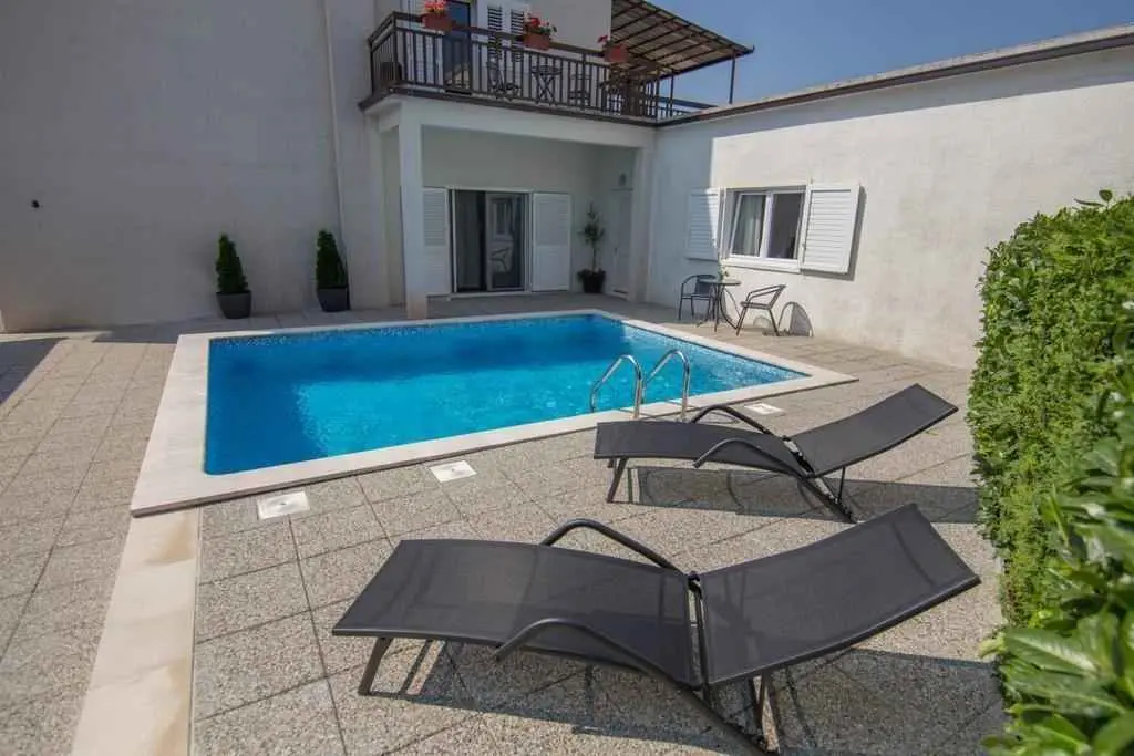 Kuća za odmor Mirela smještena je u selu Studenci. Smještajni kapacitet čini 3 sobe s bračnim krevetima (1.8 m širine), 1 soba s krevetom za jednu osobu (0.9 m širine) i 1 soba s 2 kreveta za jednu osobu (0.9 m širine) u kojima je moguće smjestiti max 9 osoba. Na svakom katu nalazi se i kupaonica. Dnevna soba opremljena je klimom,velikim televizorom i klavirom,a u kuhinji se nalaze svi potrebni kućanski aparati (kuhalo za vodu, pećnica, perlica suđa, hladnjak, aparat za kavu, mikrovalna). Dostupna je i perilica i sušilica rublja. Kuća je okružena prostranom okućnicom s vrtom,roštiljom, natkrivenim prostorom s velikim blagavonskim stolom, bazenom i sunčalištem,uz koje se nalazi dodatni prostor opremljen kuhinjom, blagavonicom, kupaonicom i prostorom za igru. Na lokaciji je moguć parking do 3 automobila,