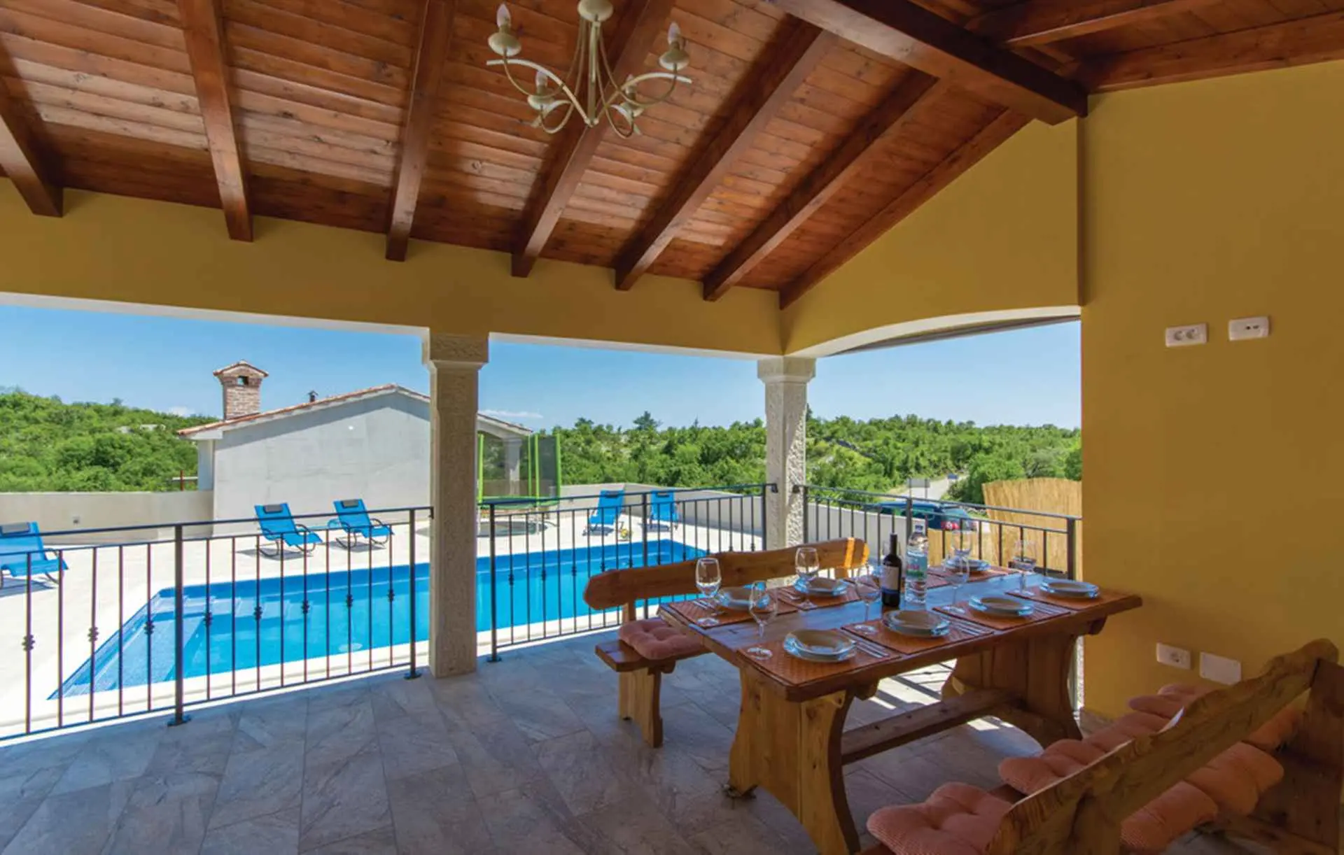 Ova prekrasna vila s 3 spavaće sobe i privatnim bazenom nalazi se u Skitaci (područje Labina). Savršen je za miran obiteljski odmor jer je udaljen od gradske vreve, a zahvaljujući rasklopivim sofama u dnevnom boravku može primiti do 8 osoba. Vanjski bazen okružen je sa 10 ležaljki, gdje se možete opustiti i uživati na suncu. Stolni tenis i trampolin animirat će Vaše najmlađe. Ljubitelji kulinarstva svoje umijeće mogu pokazati na vanjskom roštilju, a obrok poslužiti na lijepoj natkrivenoj terasi. Skitača je mirno mjesto smješteno u Istarskoj županiji u okolici Labina. Najbliži veći grad s plažom je Koromačno (5 km), gdje se također nalaze trgovina, kafić, ljekarna, pošta i turističke informacije. Restorani su udaljeni 10 km, nalaze se u Trgetu (konoba Nando i restoran Martin Pescador). Najveći grad u okolici je Labin koji je udaljen cca 23 km. Zračna luka Pula (PUY) - udaljena 60 km od objekta.