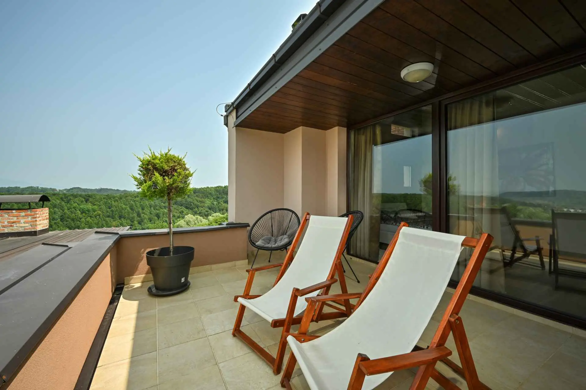 Kuća za odmor nalazi se u samom srcu Marije Bistrice, smještena na obroncima zagorskih brega. Sa lokacije se pruža prekrasan pogled na samo svetište Majke Božje Bistričke. Kuća je smještena na mirnoj lokaciji , okružena zelenilom te vam nudi mogućnost za odmor i opuštanje iz snova. Kuća je u potpunosti opremljena, posjeduje unutarnji grijani bazen, pečenjaru/roštilj sa vanjskom natkrivenom sjenicom i terasom gdje je moguća organizacija raznih vrsta proslava. Idealna lokacija za obiteljski odmor ili romantičan odmor u dvoje.