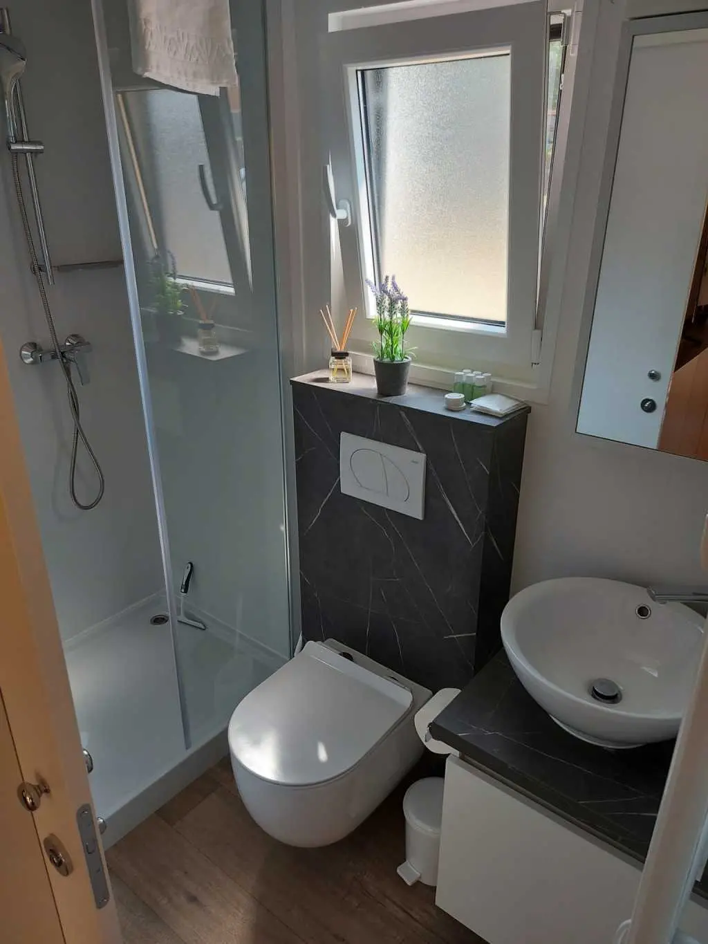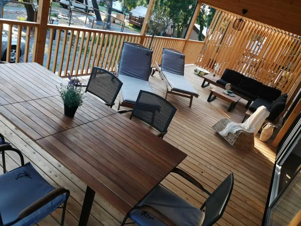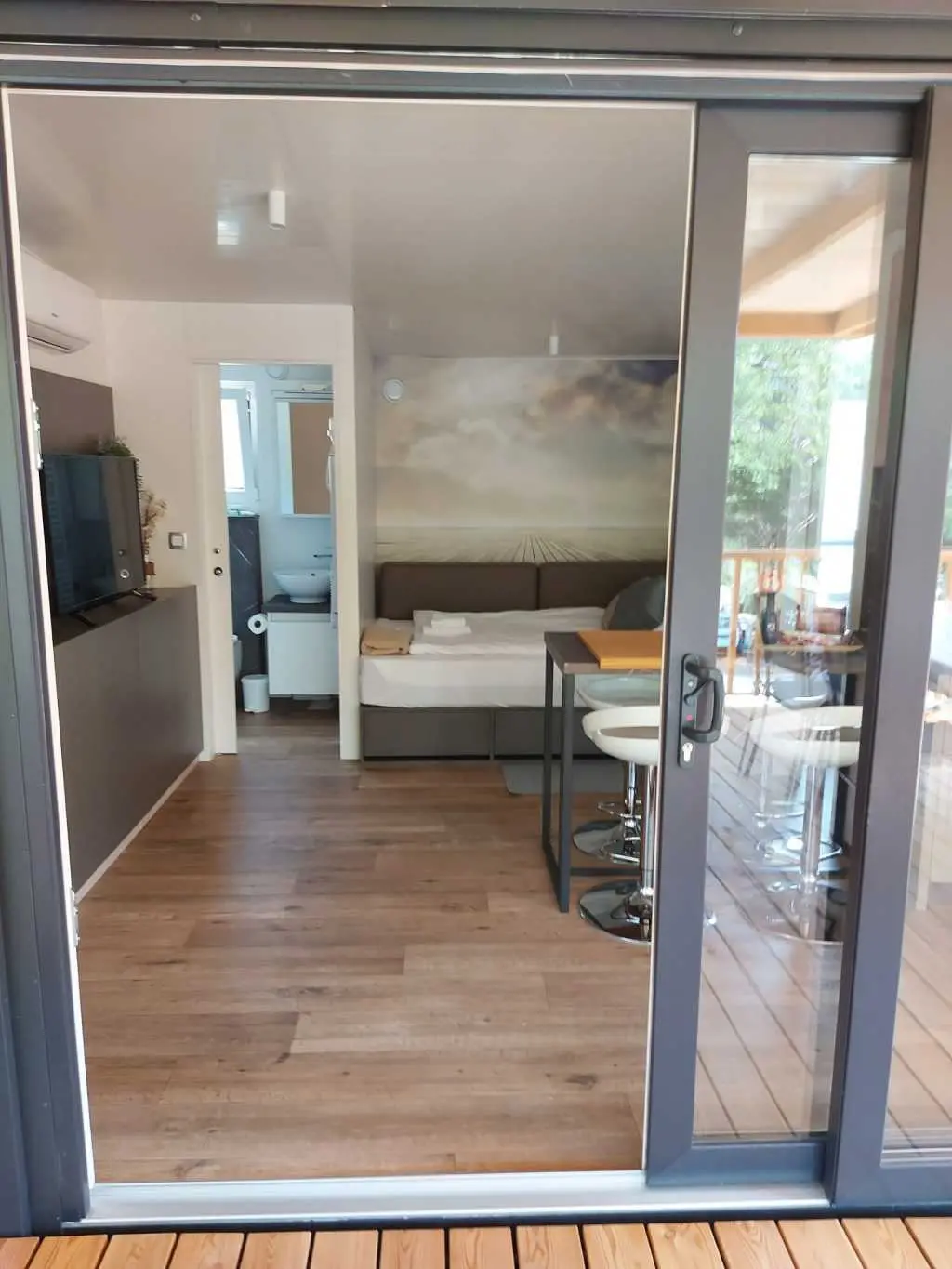 Željni ste nečeg drugačijeg? Željni odmora u okolici prirode i mira? Negdje između neba i mora, nalazi se naša nova mobilna kućica. Točnije rečeno, nalazi se na Elements kampu u mirnom djelu Selca i idealan je za svačiji odmor. Na prostranom terenu u neposrednoj blizini mora, točnije 120 metara! U tišini netaknute prirode smjestili smo kućicu da kao pozornicu gleda prekrasno more, sunce i otok Krk. Kućica je okružena prirodom. Započnite dan na terasi uz zvuk cvrčaka i miris mora. Na čak 45 m2 se nalazi stol za blagovanje te kutna garnitura za odmor, i dvije komforne ležaljke. Bočno uz terasu stoji Vam roštilj na raspolaganju. Interijer kućice nudi sve, pa Vam neće nedostajati komfora i opuštenosti u mediteranskom stilu. Dvije spavaće sobe, kupaonice, ful opremljena kuhinja, klima uređaj, Internet, TV . Idealno za do 6 osoba! Zatvorite oči i zamislite..u prekrasnom ste mjestu okruženi svijetlim vodama Jadrana. Guštajte s nama i odmorite dušu i tijelo.