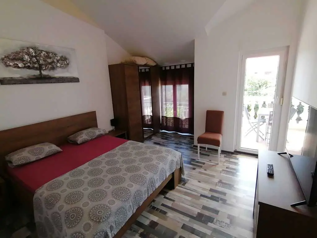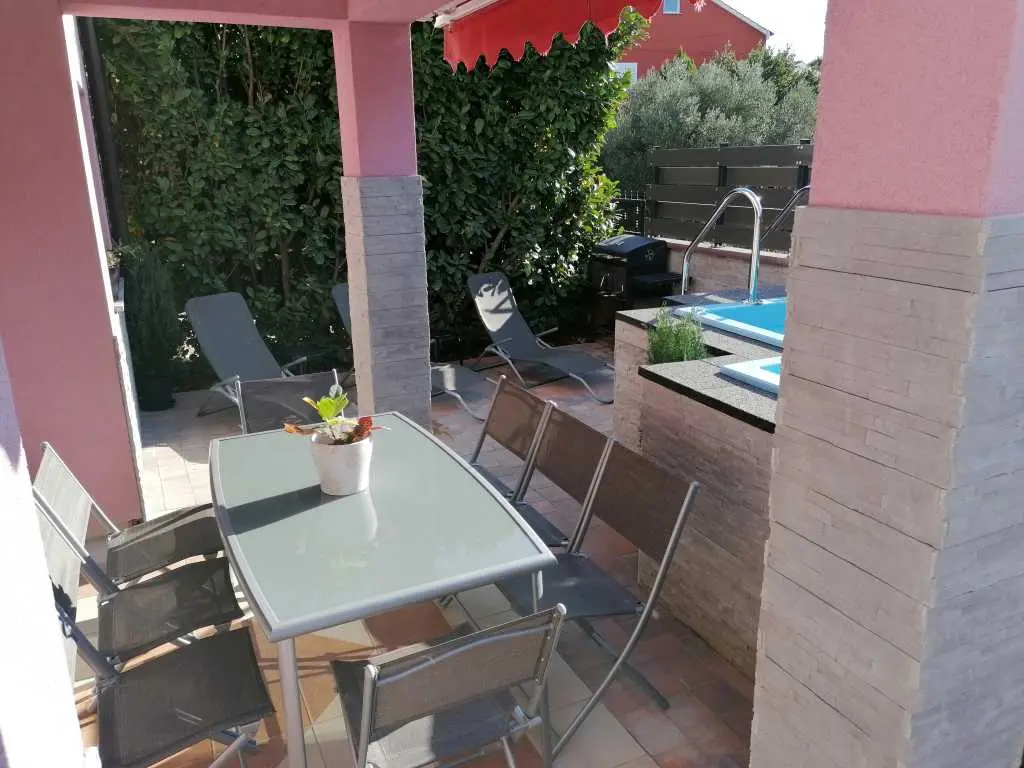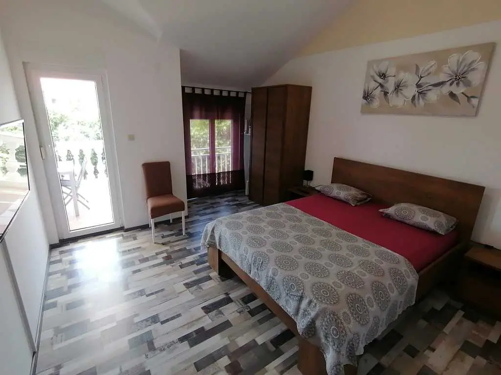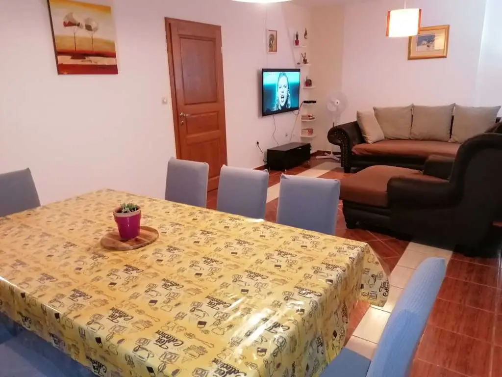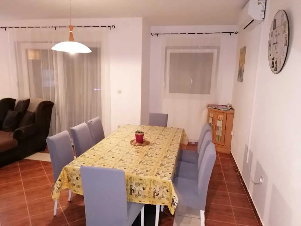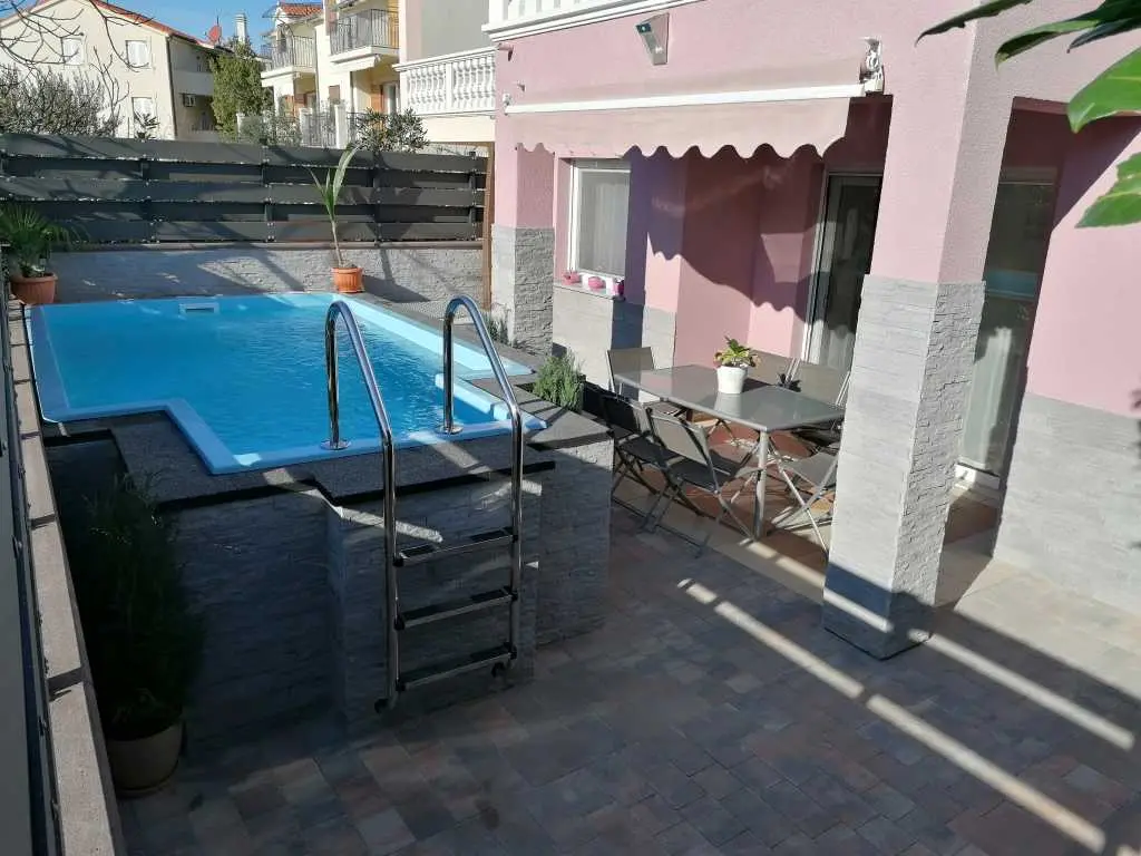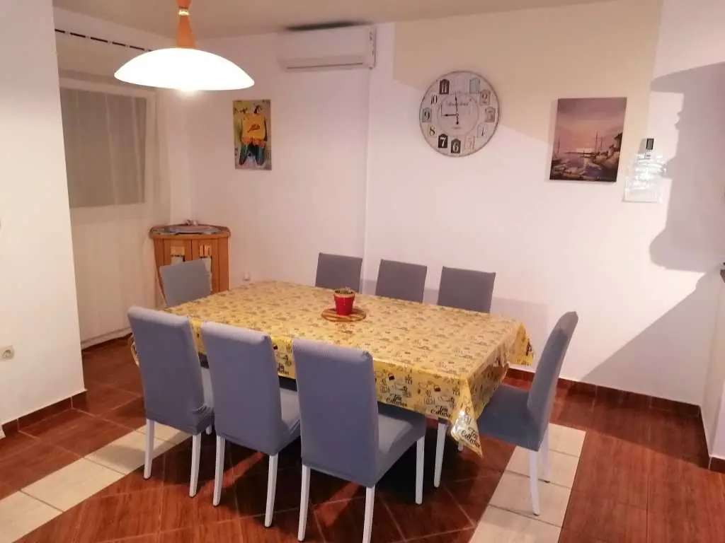Lijepa obiteljska kuća "Srima", primjerena za 2 do 3 obitelji je sagrađena na dvije etaže, nalazi se u lijepom turističkom kraju srednje Dalmacije Srima, Vodice. Do najljepše plaže te prvih kafića i ugostiteljskih objekata je udaljena cc 100m, a do centra Srime gdje se nalazi trgovina, dječje igralište i ostatak sadržaja ima 350m. Plaža je šljunkovita i pješčana te je zbog svojih plićih dijelova primjerena za djecu svih godina. Ispred kuće se nalazi privatno parkiralište za dva auta. Kuća je velićine 155 m kvadratnih i primjerena za 8+2 osobe. Ima lijep balkon s pogledom prema plaži, a u prizemlju se nalazi terasa s roštiljem i vrtnom garniturom gdje će te uživati u jelima sa žara te na ležaljkama u popodnevnim zrakama sunca, pokraj bazena dostupnog samo vama. Na površini od 155m kvadratnih raspoređenih na dvije etaže nalazi se 5 odvojenih soba, dvije kupaonice te dnevni boravak s blagavaonicom i kuhinjom. Na svakom katu kuće je po jedna klimatska naprava. Kuhinja je potpuno opremljena te ze sadrži mašinu za pranje suđa, pećnicu, četiri staklokeramičke ploče te hladnjak s ledenicom. Prvi kat sadrži: 1 x odvojena soba s bračnim krevetom 160x200 s izlazom na balkon 1 x odvojena soba s bračnim krevetom 160x200 s izlazom na balkon 1 x odvojena soba s bračnim krevetom 160x200 1 x odvojena soba s bračnim krevetom 160x200 U prizemlju se nalazi još jedna soba s kaučem na razvlačenje primjeren za dvije osobe + dnevni boravak s blagavaonicom i kuhinjom. Znamenitosti u blizini: Nacionalni park Krka-20km Stara jezgra Šibenika sa prekrasnim tvrđavama- 10km Nacionalni park Kornati Termini i cijene: 1.6 - 30.6 / 1.9 - 30.9 / 200Eu noćenje do deset osoba. 1.7 - 10.7 / 20.8 - 1.9/ 270Eu noćenje do deset osoba. 10.7 - 20.8 / 300Eu noćenje do deset osoba. Završno čišćenje 70€ Vodice 22211 Srima XVI 10A Telefon SLO:00386(0)40 249 349 HR 00385(0)989208656 Mail: house.srima@gmail.com Fb: https://www.facebook.com/apartma.vodice.dalmacija Web: http://apartmaji-kranjska-gora-smolej.si/sites/vodice_si.htm