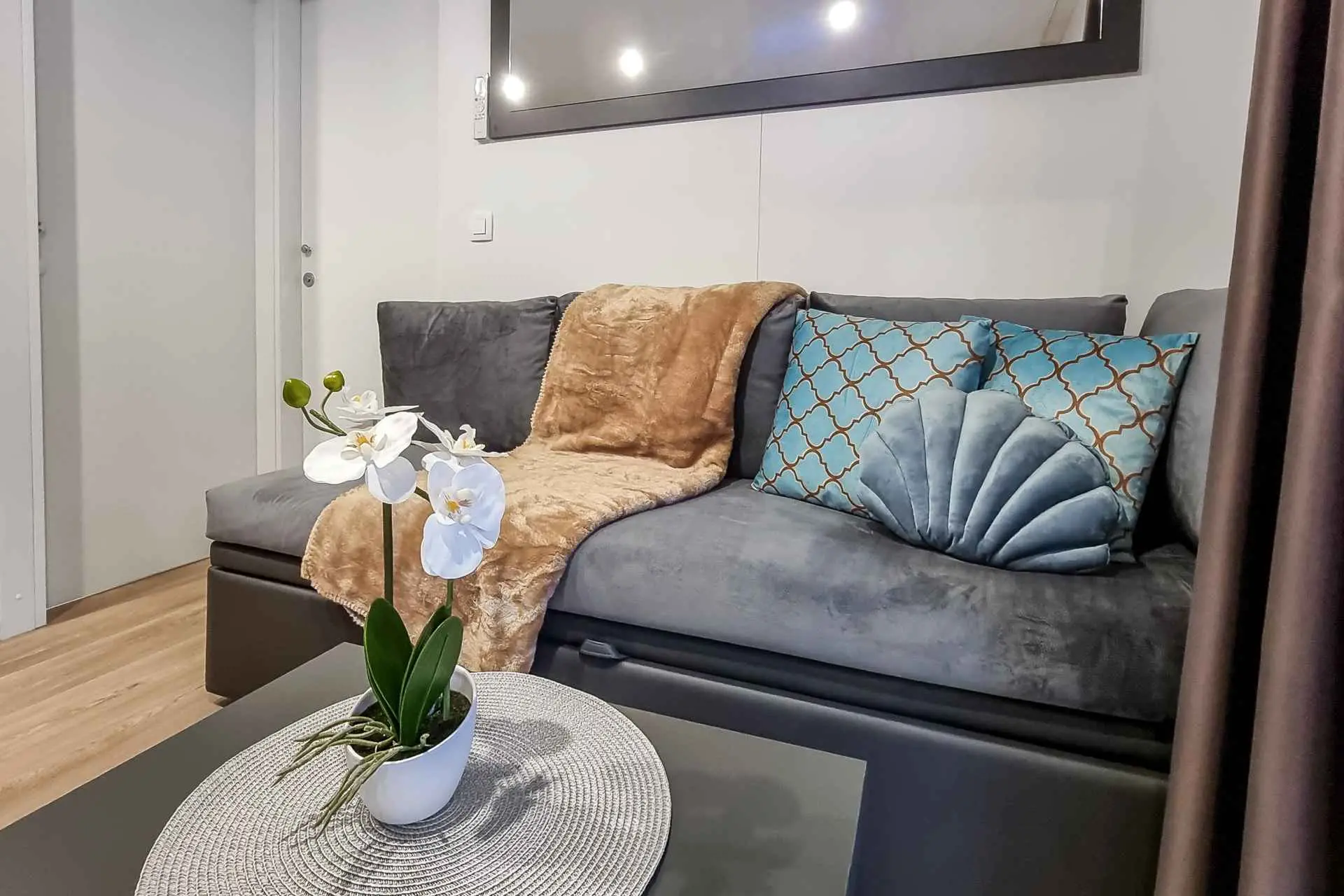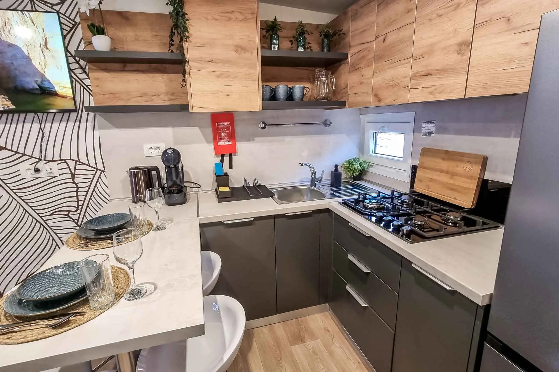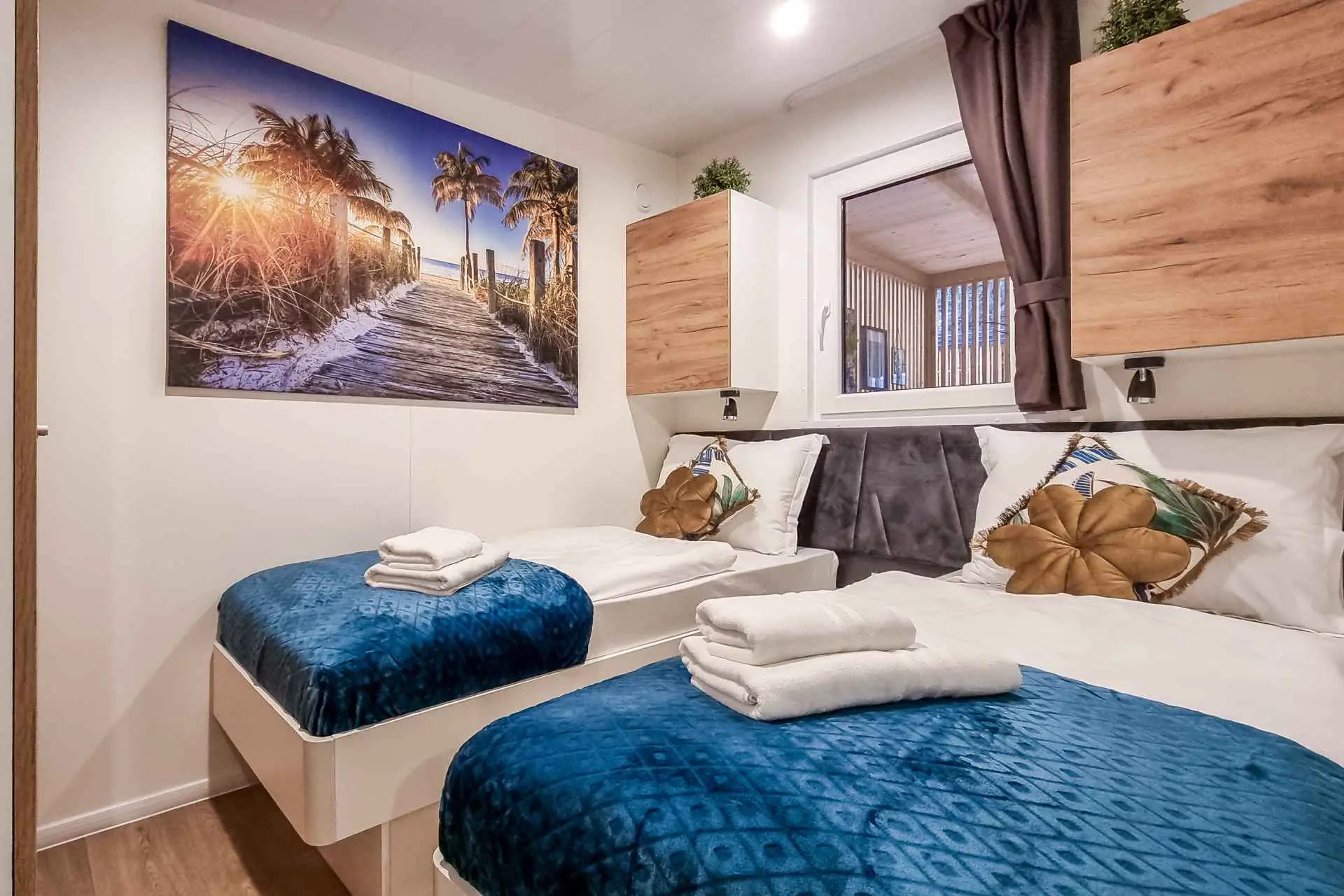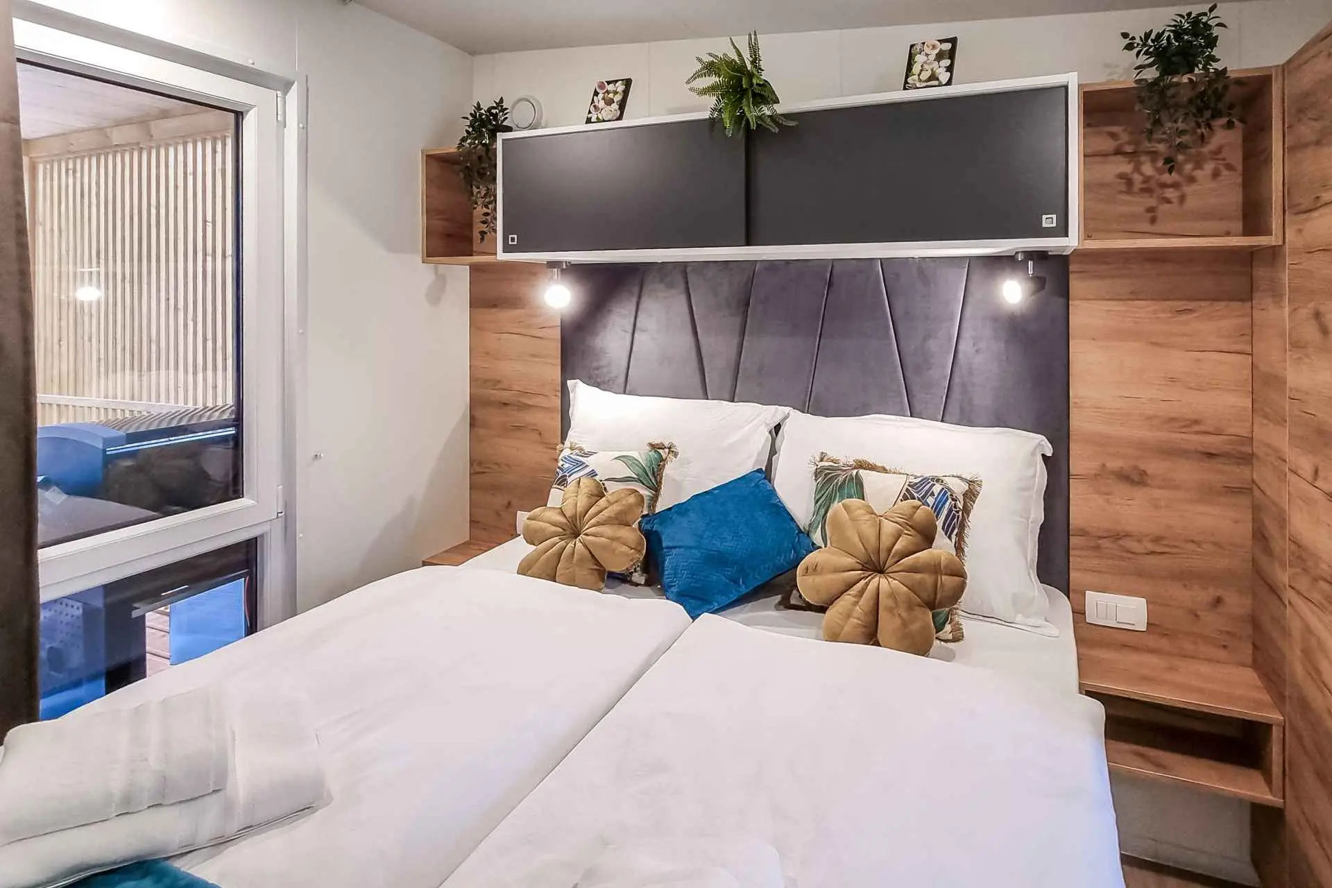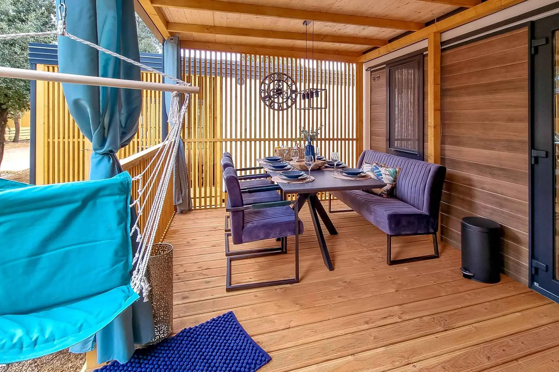 Naša moderno opremljena mobilna kućica nudi udoban smještaj za do 6 osoba, s 2 prostrane spavaće sobe, dnevnim boravkom sa kaučem na razvlačenje i 2 kupaonice. Uživajte na velikoj natkrivenoj terasi opremljenoj prostorom za objedovanje i vanjskim dnevnim boravkom, idealnom za duga noćna druženja. Ovdje možete uživati u pikadu ili se opustiti uz veliki TV, dok roštiljate na našem velikom plinskom roštilju i kuhalu na otvorenom. Natkrivena terasa okružena je borovima i blagim povjetarcem s mora. Sa jedne strane terase nalazi se prostrani prostor za objedovanje opremljen udobnom sofom za sjedenje i još udobnijim foteljama, a s druge strane, naš dnevni boravak vani nudi udobnu garnituru za sjedenje na kojoj možete ne samo odmoriti se, već i uživati u omiljenim TV emisijama na ogromnom TV-u s dostupnim satelitskim TV kanalima, Netflixom i HBO GO-om. Kućica se nalazi 3 minute do prekrasne plaže. ℹ️Velika natktivena terasa sa prostorom za objedovanje i vanjskim dnevnim boravkom sa velikim TV-om i pikadom ℹ️ Veliki plinski roštilj + plinsko kuhalo ℹ️Potpuno opremljena kuhinja (hladnjak, mikrovalna pećnica, plinski štednjak, kuhalo za vodu, aparat za kavu, perilica posuđa, toster, svo potrebno posuđe) ℹ️Dnevni boravak sa velikim TV-om ℹ️Besplatan WI-FI, SAT TV, klima ℹ️Udobna damast posteljina i ručnici ℹ️ Fen, pegla ℹ️ Hranilica za djecu ℹ️1 parkirno mjesto, drugo parkirno mjesto uz doplatu Kampu Pearl Mobile Home nalazi se na samo 3 minute hoda do pješčane i šljunčane plaže te 10 minuta šetnje do centra Biograda. U kampu i njegovoj blizini nalazi se sve što vam je potrebno za opušteni odmor – od trgovina i restorana do sportskih terena i dječjih igrališta. A najveći gušt je upravo uživanje u suncu i moru, kao i mogućnost odlaska na izlete u atraktivne nacionalne parkove poput NP Krka, NP Kornati, NP Paklenica, ili povijesne gradove poput Zadra i Šibenika.