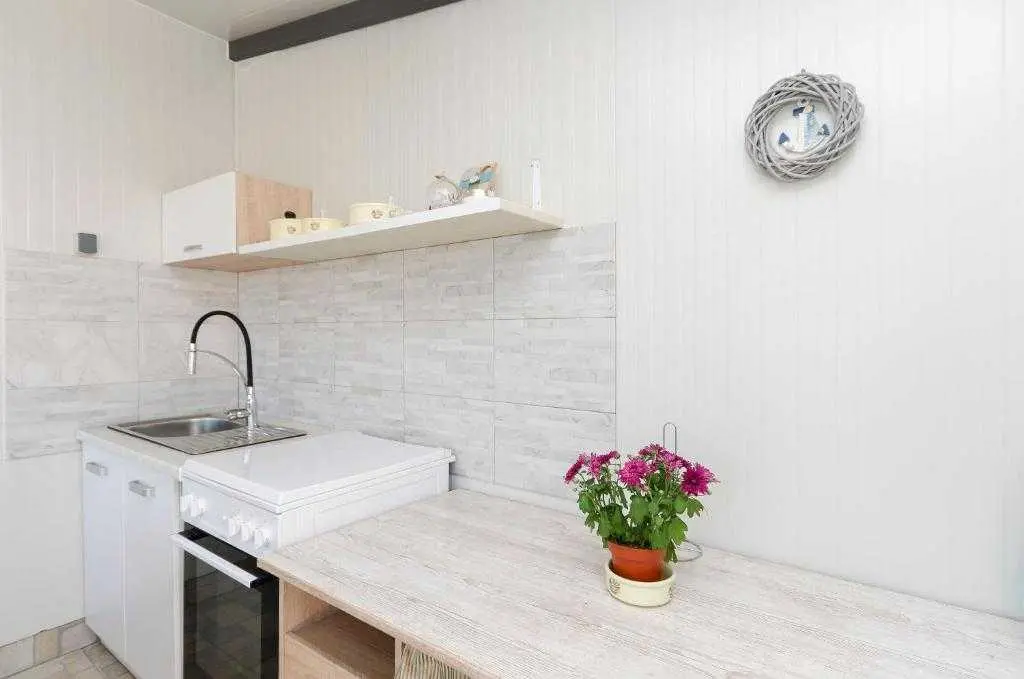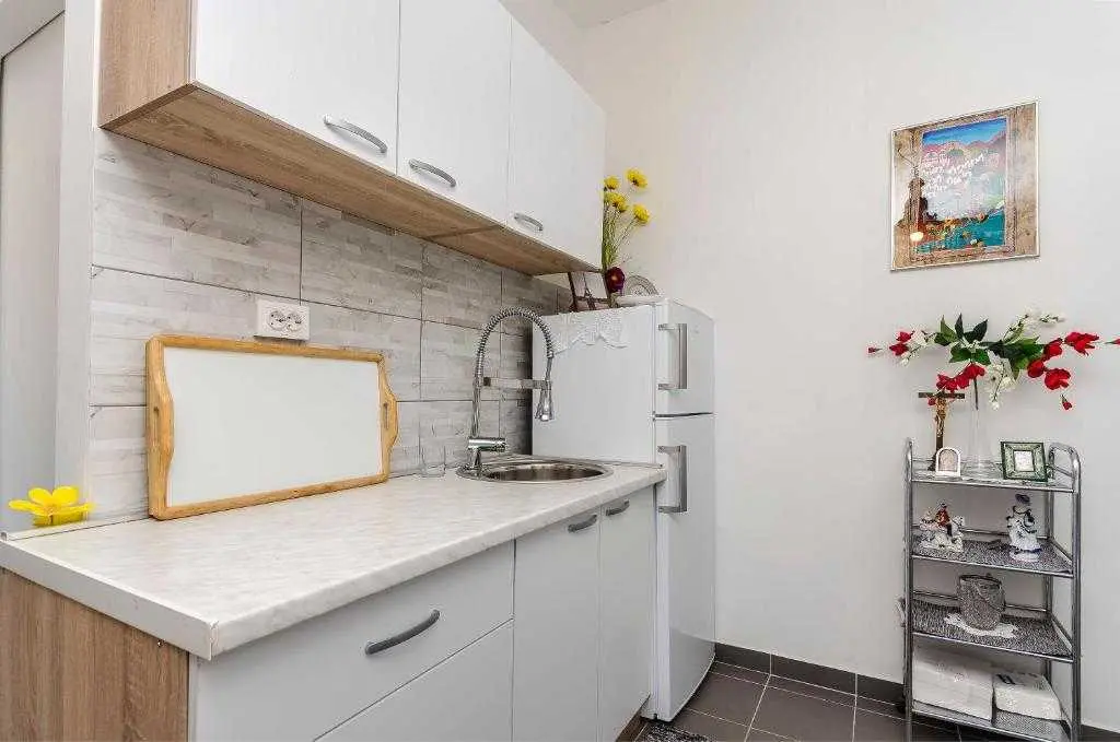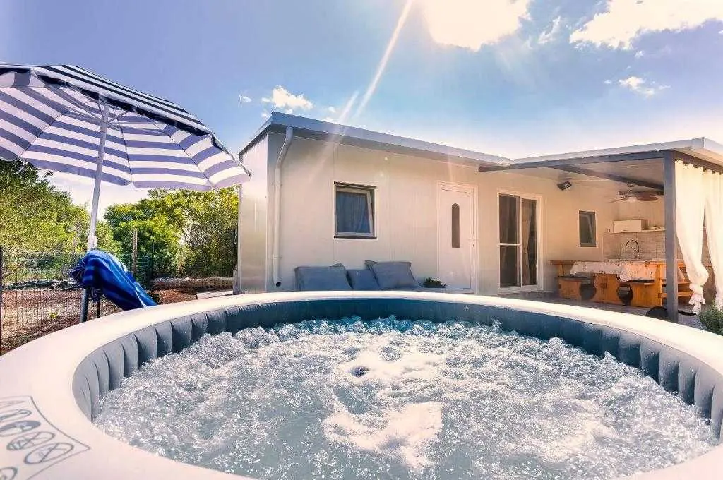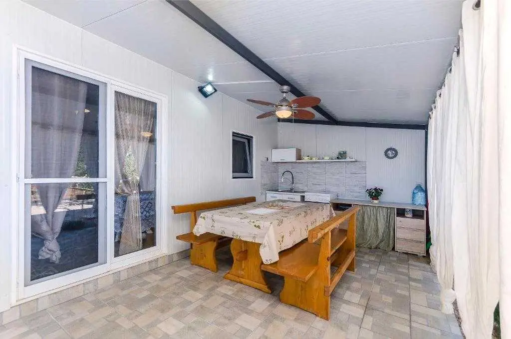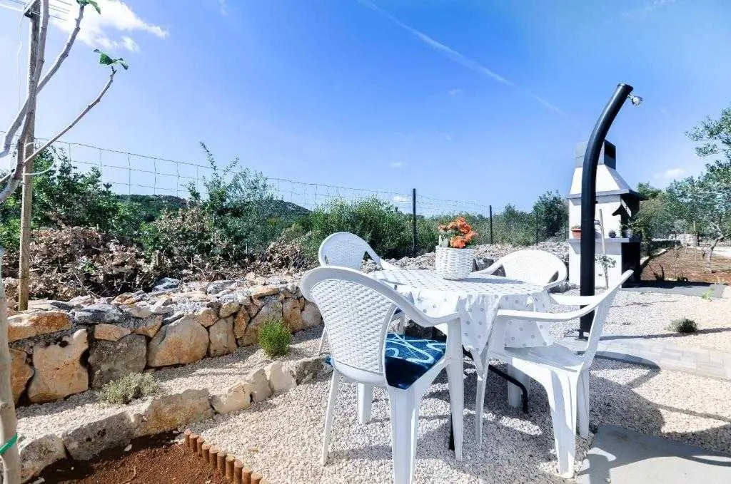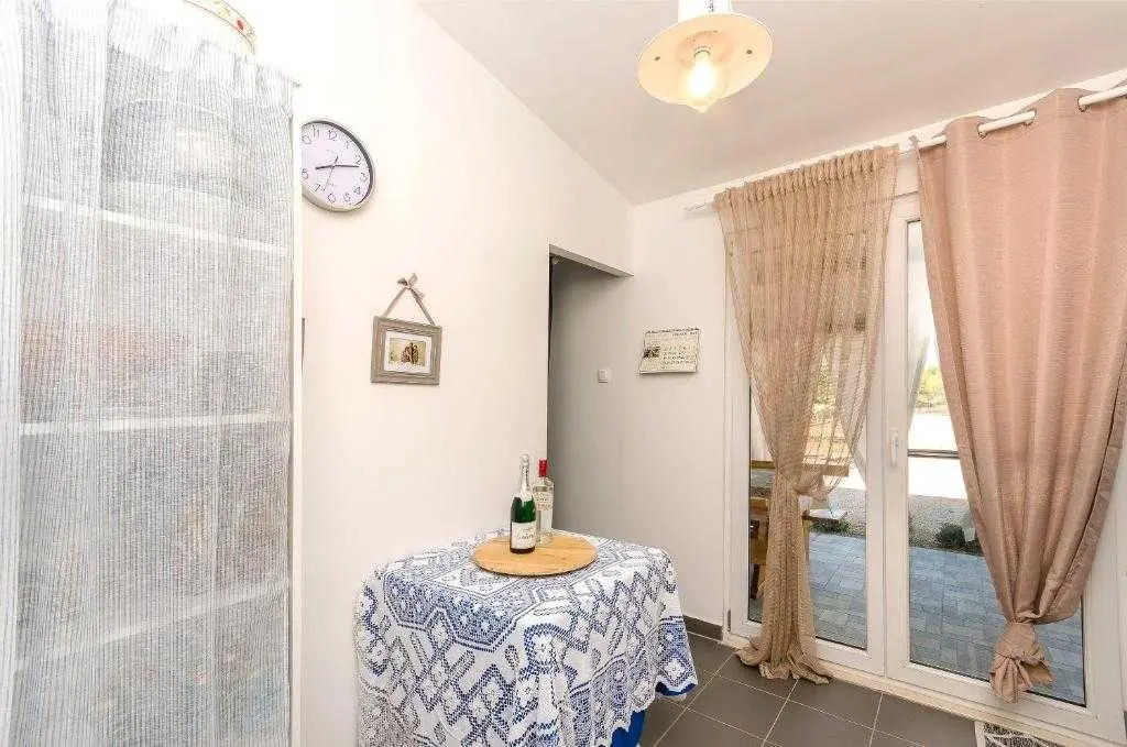 Kućica za odmor na osami Green Oasis Vodice savršena je za odmor u prirodi te nalazi se svega 7 km od plaža i zbivanja u Vodicama, na području Rakitnice. Površina posjeda je 600m2 okruženih ograđenim maslenikom te se prostire neometani pogled na okolno zelenilo. Ispred kuće se nalazi velika natkrivena terasa (20m2) sa prostranim drvenim stolom i stolicama te vanjskom kuhinjom (štednjak i pećnica na plin). Za pripremu peke, roštilja ili gradela dostupan je veliki kameni roštilj. Toplih ljetnih dana rashlađenje potražite u bazenu sa mjehurićima pored kojeg se nalaze ležaljke i suncobran, a također je dostupan vanjski tuš (grijanje vode na solarno). Kućica (30m2) je nova i izgrađena ove godine - ima dvije spavaće sobe sa bračnim krevetima, unutarnju kupaonicu (tuš + wc) te unutarnji prostor za pripremu hrane (frižider i radna površina, stol i stolice). Električna energija se dobiva pomoću solarnih panela (220V) te pričuvnog generatora – pogodno za osvjetljenje, stropne ventilatore, punjenje mobitela/laptopa i TV. Internet nije dostupan. Voda u kućici je osigurana iz spremnika (zapremnine 3000L), te ju treba koristiti pažljivo. Za piće preporučujemo flaširanu vodu, a vodu za kuhanje treba prvo prokuhati. Parking je besplatan i osiguran na posjedu, a do kućice se dolazi makadamskim putem. Najbliže trgovine (Lidl i Plodine) nalaze se na ulazu u Vodice, udaljene oko 4 km. Za one željne aktivnog turizma, u blizini se nalazi nekoliko biciklističkih staza te prostrane šetnjice. Kućni ljubimci su dobrodošli bez nadoplate! Čekamo Vas u našoj zelenoj oazi, idealnoj za autentični odmor, mir i bijeg od stresa svakodnevnog života.